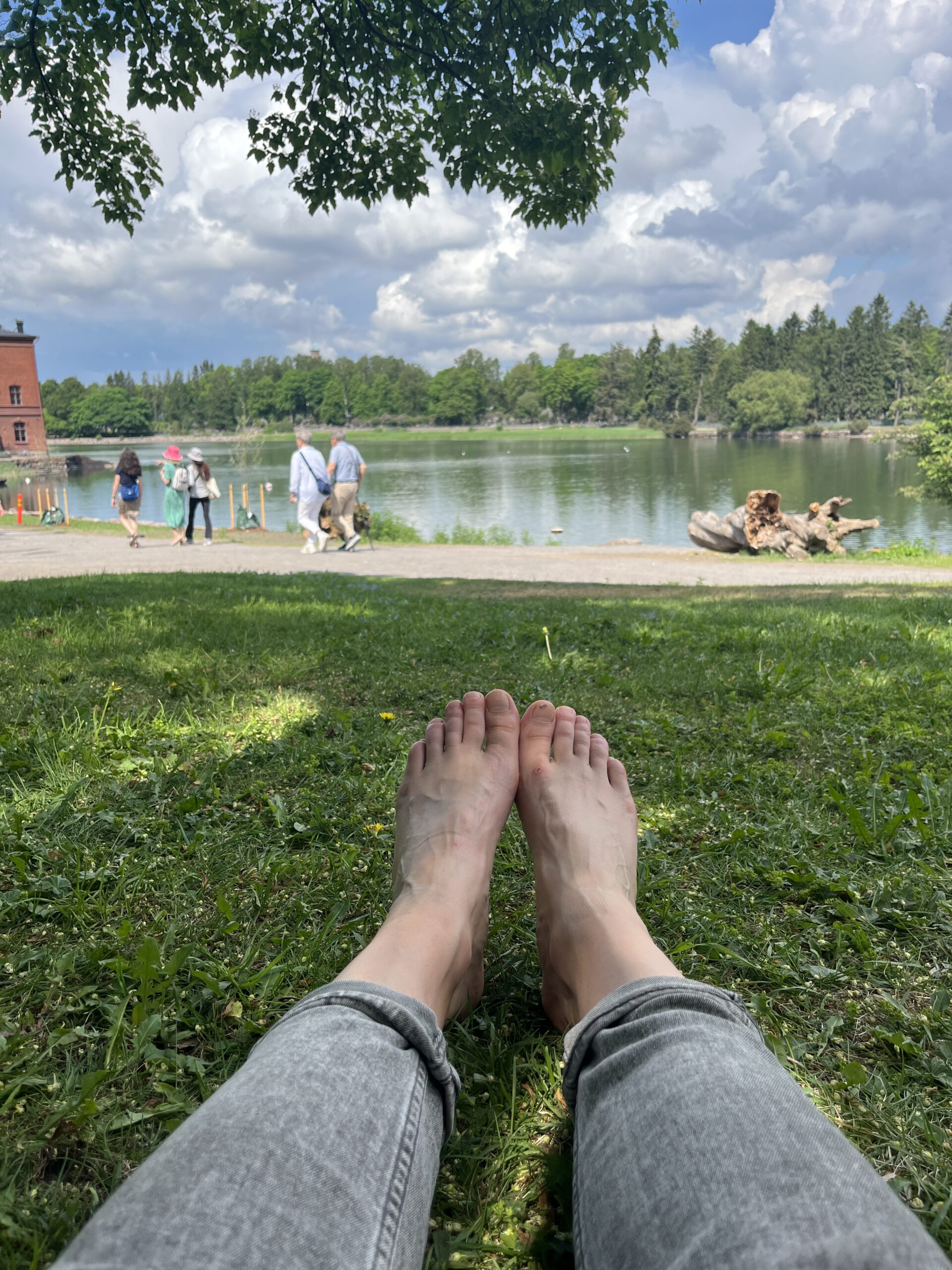 Edasi olime teelahkmel. Kuna me jõudsime Soome juba 9:30 hommikul, Airbnb-sse sai aga alles kella 15st, oli vaja nüüd viis tundi surnuks lüüa. Neiud tahtsid šopata, minu jaoks oli see aga kõige piinarikkam mõte üldse. Esiteks pole mul kotis sentimeetritki vaba ruumi ja teiseks tahtsin ma värskes õhus viibida. TT aga ei tundnud erilist tõmmet minuga mööda Helsingit rattaga kärutada, mis jällegi on minu lemmiktegevus. Seega lahknesime kokkuleppega kohtuda kahe tunni pärast Vapianos. Kuigi lubas vihma, saime meie tõeliselt sooja suveilma tunda. Rattalaenutus osutus liiga segaseks ning hüppasin hoopis tuttavama Bolti tõuksi selga. Suuna võtsin umbropsu mere ja mu lemmiku Seurasaarenselkä poole. Teadsin, et kuskil on surnuaeg ja surnuaia taga imeilus lahesopp kohviku ja parkidega. Parki jõudes süda lihtsalt rõkkas sees – istusin pargijärve äärde puuvarju, võtsin umbsed tossud jalast ning pikutasin elu järele mõeldes ja hanesid vaadeldes muru peal.