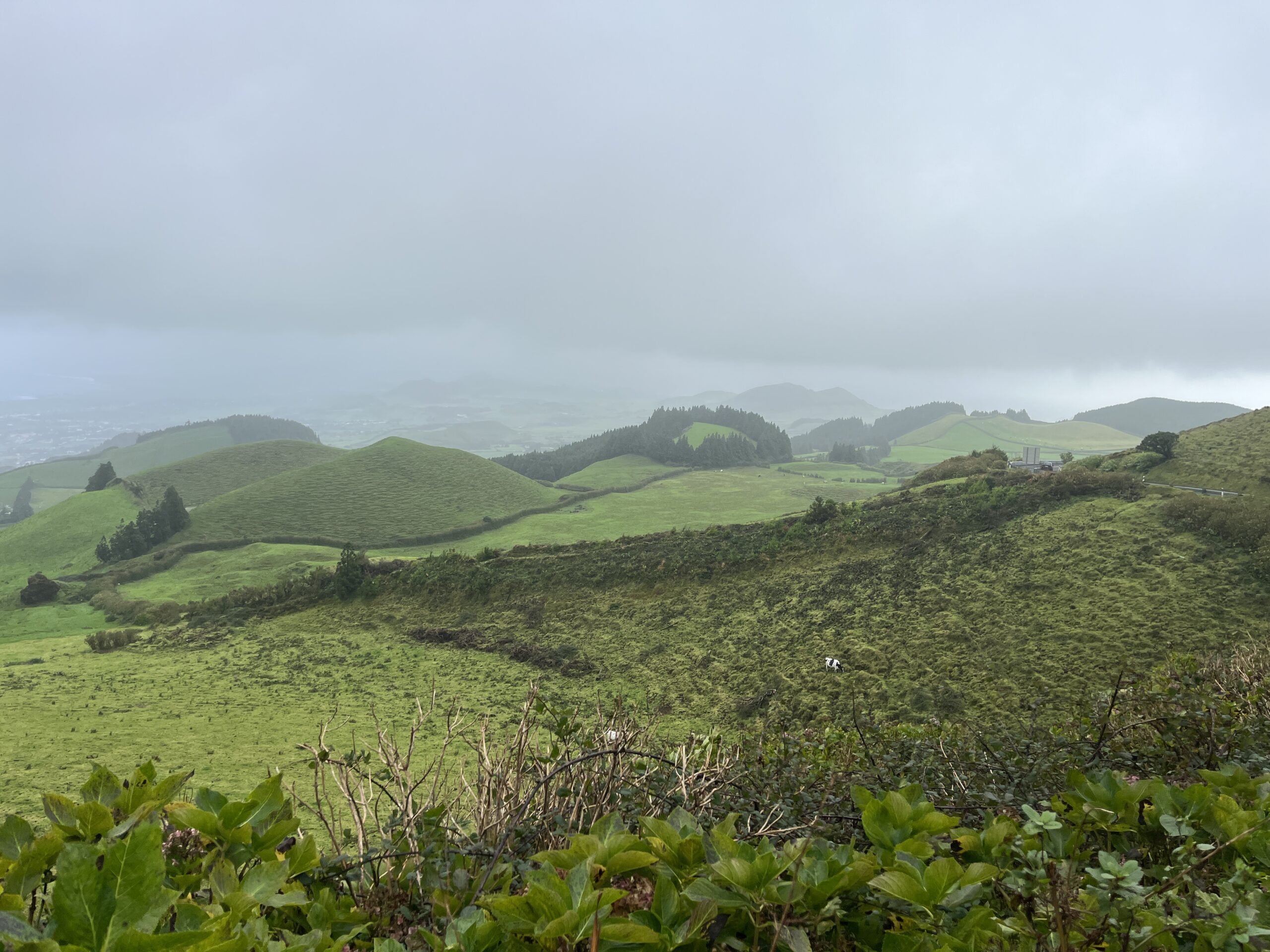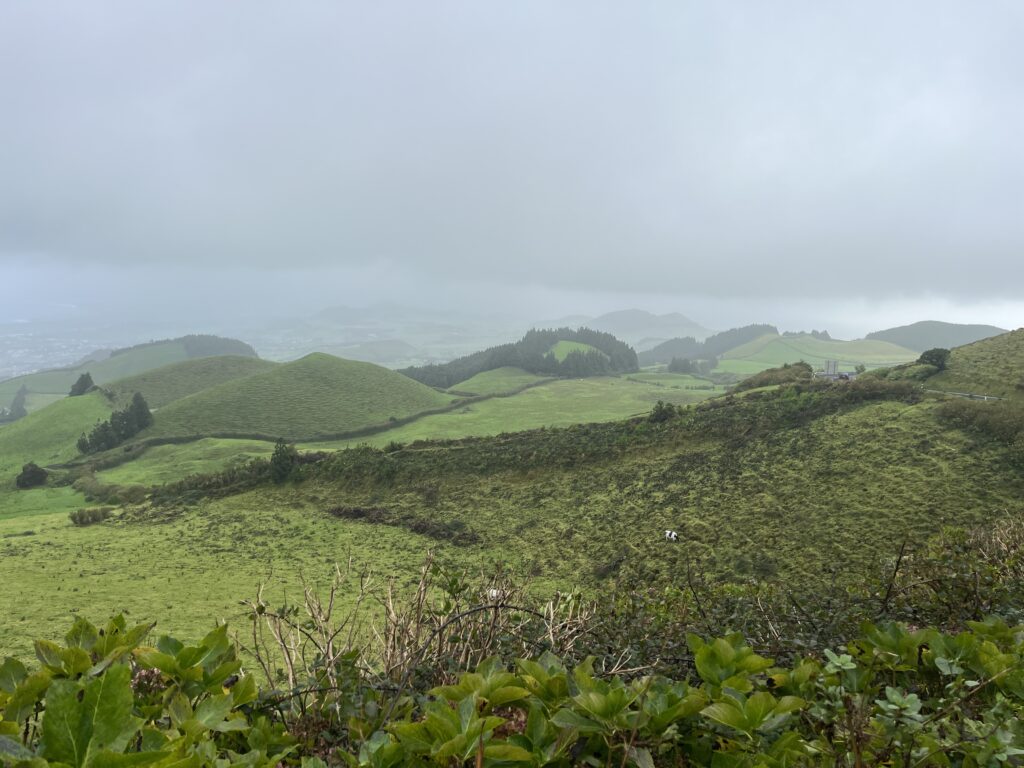 Rendifirma esindus asus õnneks ca 10minutise jalutuskäigu kaugusel hotellist, seega vinnasin koti selga, jätsin DMCharme’i külalisteraamatusse ja Bookingusse hunniku kiidusõnu ning asusin mööda kitsaid munakivitänavaid teele. Jõudsin kohale täpselt kella 12ks ehk kokkulepitud auto üleandmise kellaajaks. Vastu tuli mulle kohalik mees, sõidustas pisikese punase suksu ette (jess, vähemalt polnud Fiat Panda!), palus lepingu allkirjastada ja lükkas kaardimakseterminali nina alla. Imestasin, et me ei käinudki tiiru ümber auto ega märkinud ära auto puuduseid vms. Ju siis puuduseid polnud! Sain võtmed kätte, istusin autosse ja sõit võis alata. Ainult et…ee…kuhu? Otsustasin, et alustan oma ringreisi läänerannikult, seega sisestasin telefoni sihtkohaks lihtsalt Sete Cidades. Oh jumal, nüüd tuleb ju töömeeste pilgu all siit töökojast kitsale tänavale pöörata. Võõra manuaalkastiga autoga… Kohmitsesin enne mootori käivitamist veidi autos, sättides peegleid ja istet paika. Telefoni polnud kuskil võimalik kinnitada, seega proovisin seda hoida lihtsalt nähtava koha peal. Lülitasin auto käima, sidur alla, esimesel korral panin gaasiga vähe üle, edasi läks juba ladusamalt. Esimene takistus ületatud – suutsin end kitsale tänavale kahe autorea vahele pöörata ilma ennast ja teisi kriipimata! Nüüd ilmnes aga uus probleem – telefon hakkas omal kohal ringi sõitma ning kaart kadus täielikult mu vaateulatusest. Üritasin ühe käega seda kuidagi paika saada, silmadega liiklust, valgusfoore ja teeviitasid jälgides ning samal ajal välja nuputada, et kas mu esituled ikka põlevad. Otsustasin, et lollikindel valik on alguseslihtsalt lennujaama suunas hoida, kuid linnast läänesuunas väljudes ja mägede poole sõites selgus tõsiasi, et üle kolmanda käigu auto tõusudel paraku välja ei vea; liiga madala käiguga sõites tõstis armatuurlaud aga hoitavalt lärmi. Hakkasin vaikselt närvi minema ja pöörasin pärast 15minutist sõitu esimesse parklasse, et korraks hinge tõmmata ja endale restarti teha.