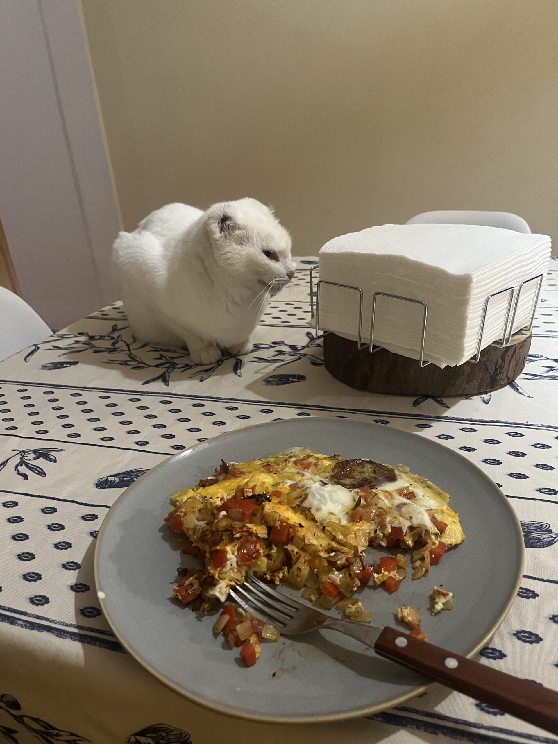 Seega valmis täiesti adekvaatne õhtusöök, mida pidin kassi valvsa pilgu all sööma, kes teeskles, et tal tegelikult pole plaasin minu taldrikult midagi pätsata. Pääsesin! Eks hommikusöögi jaoks tuleb siis hommikul minna eraldi šopingut tegema, aga tänane õhtu on vähemalt mureta.