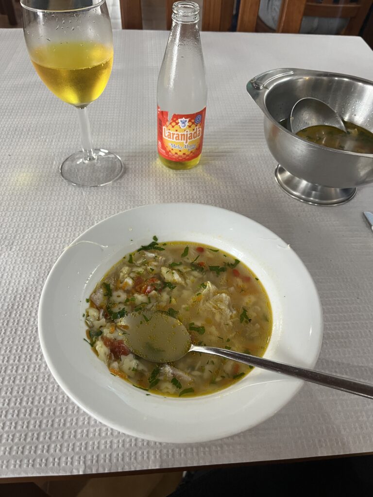 Astusin kõrvalruumi, kus oli juba vähe kenam olemine. Inimesed istusid valgete paberist laudlinadega kaetud laudade taga ja einestasid lõunat. Võtsin istet ning viipasin valges särgis lipsu ja põllega vanamehele, et sooviks seda kalasuppi palun. Märkasin, et ühes teises lauas söödi parasjagu ka kalasuppi – keset lauda oli suur plekist kauss ning inimesed tõstsid endale sealt ette, haugates kõrvale mõnusat värsket saia. Ootasin põnevusega, kuni ka mulle toodi isiklik plekist lähker lauda. Paraku minu päevasupis ei olnud säherdusi suuri kalatükke nagu kõrvalseltskonna lauas, samuti ei õnnistatud mind kahjuks saiakorviga, aga noh, hea küll, säästuvärk ju. Rüüpasin hoopis L’aranjada’t peale ja lürpisin suppi, mida oleks jagunud ka õhtusöögiks. Pühkisin suu puhtaks, tänasin ja asusin tasumiseks uuesti puhvetileti äärde. Kohalikele sarnaselt palusin ka endale ühe kreemikorvi eine lõpetuseks. Tegemist polnud siiski pastel de nata‘ga, vaid mingi muu sarnase kondiitritootega. Ei olnud nii magus ja erilist maitseelamust ei pakkunud. Noh, söögikord sai igatahes edukalt seljatatud. Kiire poeskäik snäkivarude täitmiseks (siin on poodides üllatavalt kesine toiduainete valik) ning edasi oli päevaplaanis väike matkake. Parkisin auto Miradouro do Adro da Igreja kiriku juurde ning kössitasin veidi enne minekut autos. Olin kuidagi kahevahel, sest ümbruses polnud ainsatki hingelist ning taevas nägi taas üsna ähvardav välja. Sees ei olnud eriliselt hea tunne, sest saar mõjus madalhooaja tühjuses kuidagi kõhedalt ning ma polnud viimastel päevadel ühtegi sõbralikku kohalikku kohanud. Kõik millegipärast jõllitasid mind altkulmu, ka siis kui ma lihtsalt tänaval autoga neist mööda sõitsin. Lõpuks võtsin end siiski kokku, väljusin autost ja asusin kõndima matkaraja suunas.