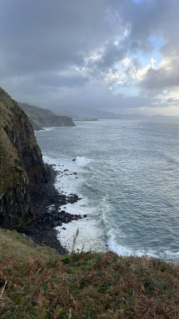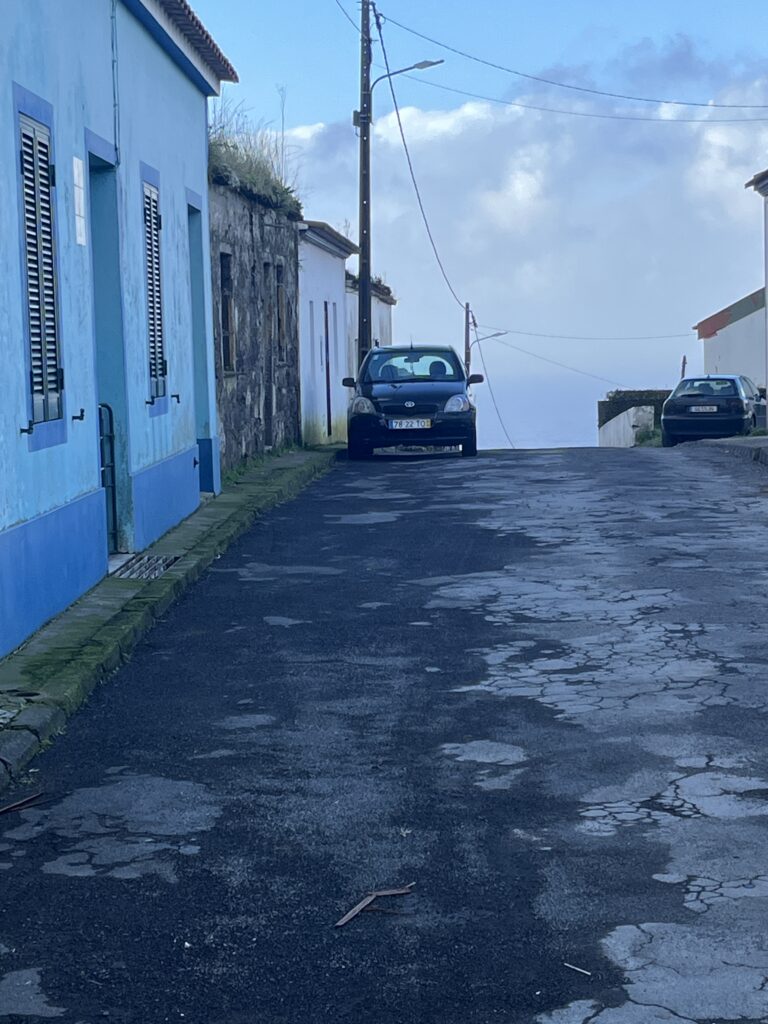 Neljandal Assooride päeval ärkasin oma uues mõnusas majutuses suures voodis laiutades tühja kõhu peale. Aknast vaatas vastu ähvardavate pilvedega vihmane taevas, kuid päike oli siiski väljas ja puude vahelt paistis ookean. Kohalik pisike toidupood asus vähem kui 10minutise jalutuskäigu kaugusel, seega riietusin kiirelt ning astusin tänavale. Esimese asjana oli vaja aga selgeks teha, milline see mereäär siin on. Eelnevalt kaarti vaadates ja majutusasutuse kaustikut sirvides oli selge, et päris randa Porto Formosos pole, kuid lootsin siiski leida ligipääsu veele ning vähemalt varbad hommikuti märjaks kasta. Ainuke, mis sel hommikul aga märjaks sai, olid mu riided.