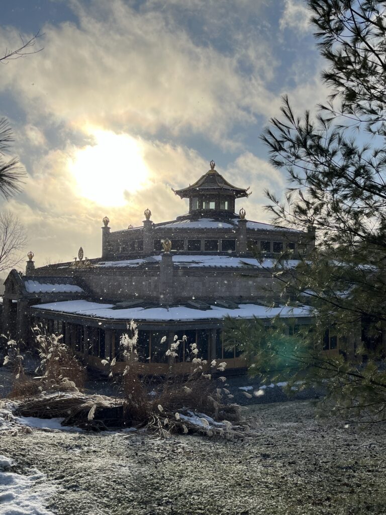 Kindlasti mängis minu enesetundes olulist osa ka kommuunis elamine. Kuigi inimestega pead-jalad koos olemine ja töötamine on minu jaoks olemuselt täielik õudus, siis siin oli kuidagi teisiti. Tundsin igapäevast toetust ja hoolimist teiste poolt, mis aitas samuti rahu saabumisele kaasa. Jäin mõtlema Johni peale. Taipasin, et just tema tõttu ei ole ma end tundnud üksildaselt. Temaga ühes majapidamises koos eksisteerimine, meie igapäevased väiksed vestlused ja jalutuskäigud olid täitnud minus mingit tühimikku, mida ma arvasin, et saab täita ainult romantiline kaaslane. Aga tuleb välja, et ei – selleks piisab ka turvalise ja terve platoonilise kiindumussuhte loomisest ükskõik millise meesterahvaga. Oluline oli aga siinkohal kindlasti see, et John oli minust peaaegu kaks korda vanem. Mingi selline isa-vanaisa-onu tüüpi dünaamika ja hoolimine tundus siin olevat võti, mis aitas kaasa enda terviklikumana tundmisele. Ja pagan, see oli ilus tunne. Seda tunnet ei rikkunud isegi järsku sadama hakanud lumi, mis langes nii jämedalt, et mul silmad-suu seda täis olid. Tõstsin veidi tempot, sest ei tahtnud värske lumega oma uut fliisi märjaks teha, kuni jõudsin teerajaga templi taha. Sel hetkel ilmus pilve tagant päike ja valgustas üleni templi suurt kuldset katust, mis koos paksu langeva lumega moodustas eriliselt piduliku ja maagilise vaatepildi. Seisin ja vaatasin vaikuses seda looduse ilu vaatemängu ning olin täiesti jahmunud. Ma tunnen end nii-nii õnneliku ja tänulikuna, mõtlesin oma roosa südamega fliisis ning imasin igat detaili sellest hetkest enda põue. See sama neiu, kes nädal tagasi tühjade taskute ja laes ärevusega New Yorki lendas. Mis raha? Mis stress? Kõik on ju täpselt nii, nagu olema peab.