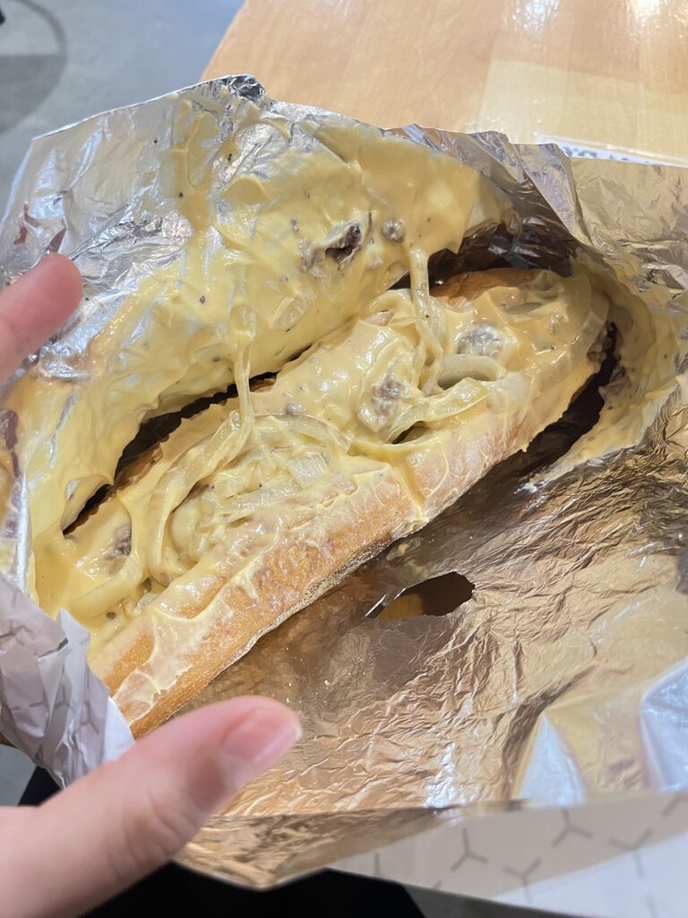 Kaks ja pool tundi hiljem ärkasin oma kirjutamistransist ning avastasin, et lõunasöögiaeg oli kätte jõudnud ning kui ma tahan kella 16:20ks Independence Halli ekskursioonile jõuda, pean jalad tööle panema. Guugeldasin kiirelt, kust saaks linna parimat cheese steak’i ning asukoha mõttes tundus kõige loogilisem võtta suund Woodrock Sandwich Shopi poole. Sinna oli selline mõnus 20minutine jalutuskäik läbi madalate punastest tellistest majadega ääristatud tänavate, kus puhus küll jahe tuul, kuid puud olid mõnusalt värvilised, inimesi vähe ja need, kes olid, tundusid rahulikult kulgevat. Sandwich Shop ise asus natuke veidral kõrvalisel tänaval, peale minu oli seal ainult üks asiaatidest paarike nurgas võileibu näost sisse ajamas. Tellimus tuli esitada QR-koodi abil internetis ning kõik teenindajad olid hispaaniakeelsed. Sirvisin telefonis menüüd ning silmad tahtsid hindade peale natuke pahupidi pöörduda. 16 dollarit VÕILEIVA eest? Paraku polnud mul enam aega kuskile mujale minna ja kõht oli ka juba nii tühi, et kui juba Philly sandwich’i tellida, siis ikka täie raha eest. Seega valisin kõige peenema variandi ehk antrekoodi, sibula ja trüflikastmega võileiva. Ja ütleme nii, et see peaaegu oli ka oma hinda väärt. Kaste voolas laiali mööda mu käsi ja lauda, aga maitse oli lihtsalt luksuslikult imeline. Suutsin vaevu kolmveerand võileiba endale sisse ajada ning juba oligi aeg Independence Halli suunas liikuma hakata.