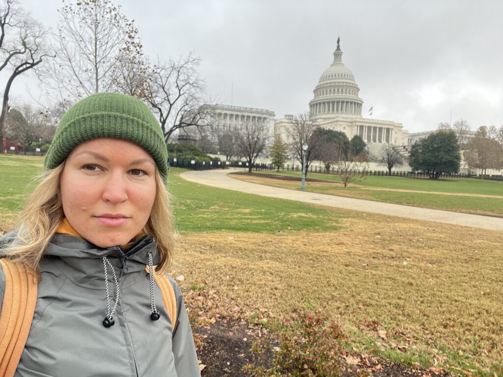 Nüüd jäi mulle veel piisavalt aega, et jalutada ümber tohutu suure Kapitooliumi aia alla Reflecting Poolini, kust avaneb kuulus vaade Washingtoni monumendile. Äge, kui palju ruumi ja vaateid võib ikka ühes linnas leiduda! Kapitooliumi aias seisis hiiglaslik kuusepuu, mis nägi natuke räga välja, kuid lähemale jõudes selgus, et tegemist on “The People’s Tree” ehk inimeste puuga, mis on toodud kaugelt-kaugelt Alaskalt (milline ökoloogiline jalajälg…) ja selle külge riputatud “ehted” olid samuti meisterdatud Alaska elanike poolt teatud tingimuste algusel. Kaunistused pidid reeglite põhjal olema kerged, taaskasutatavast looduslikust materjalist, värvilised ja esindama kuidagi Alaskat. Noh, ja nii ta seal siis seisis, kirju nagu juudi jõulupuu oma papptaldrikutest ja lõngadest jõuluehetega. Kapitoolium ja rahvapuu nähtud, tundus paslik pöörduda tagasi rongijaama poole. Mul isutas hirmsasti millegi sooja ja vürtsika, soovitavalt mehhiko toidu järele. Lootsin, et ehk on kusagi lähedal Taco Bell, mida ma polnud jõudnud veel külastada, kuid paraku tuli mul leppida hoopis Chick-fil-A burgeriga. Ma ei loeks seda just mäletamist väärt eineks, aga kõhupõhja sai vähemalt midagigi. Kuna burger ise oli juba absurdselt kallis, ei hakanud ma einet võtma, seega kõht nii täis ei saanud, nagu enne 16tunnist rongisõitu vaja oleks.