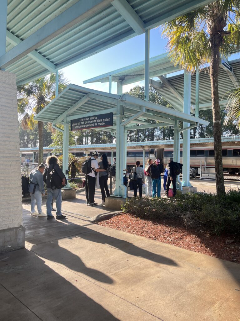 18. detsembri hommikul tegin Jacksonville’ist rõõmuga kiirelt minekut, sest tegemist oli üsna mõttetu linnaga. Seekordne rongireis oli eelmisega võrreldes ikka väga üürike – alla kolme ja poole tunni! Inimeste rongi juhatamine on USAs muidugi täielik eraldi töövaldkond, tundubki, et vagunisaatja amet on selleks välja mõeldud, et inimestele tööd pakkuda. Igatahes pandi meid kõigepealt seisma mitmesse pikka järjekorda ning rongiukse ees seisis tõreda olemisega matsakas mustanahaline naine, kes pileteid kontrollis ja tüdinenult kõva häälega teavitas sulle sinu istekoha numbri. Enamik inimesi olid ka muidugi nagu kuu pealt kukkunud ja kõigest väga segaduses. Jälgisin hajameelselt protsessi, kui minu juurde astus üks suur mustanahaline vormiriides mees, vaatas mulle otsa ja küsis tõsiselt: “Miss, have you been dunkin’ lately?” Esimese hooga ehmatasin sellest kõnetamisest ära ega suutnud kohe kokku viia, et mida mu käest täpselt küsitakse. Äkki tahavad mu viisat näha või midagi? Või küsivad, kas ma kannan narkootikume kaasas. Küsisin igaks juhuks täpsustavalt: “Umm…sorry?” Mees kordas ennast ja hakkas siis naerma: “I’m just messing with ya, you got them long legs like my sister!” Ah et minu pikkus paistis silma. Nojah, ei korvpalli pole ma kunagi harrastanud, aga ujumist küll! Mees patsutas mulle õlale ja astus naerdes edasi.