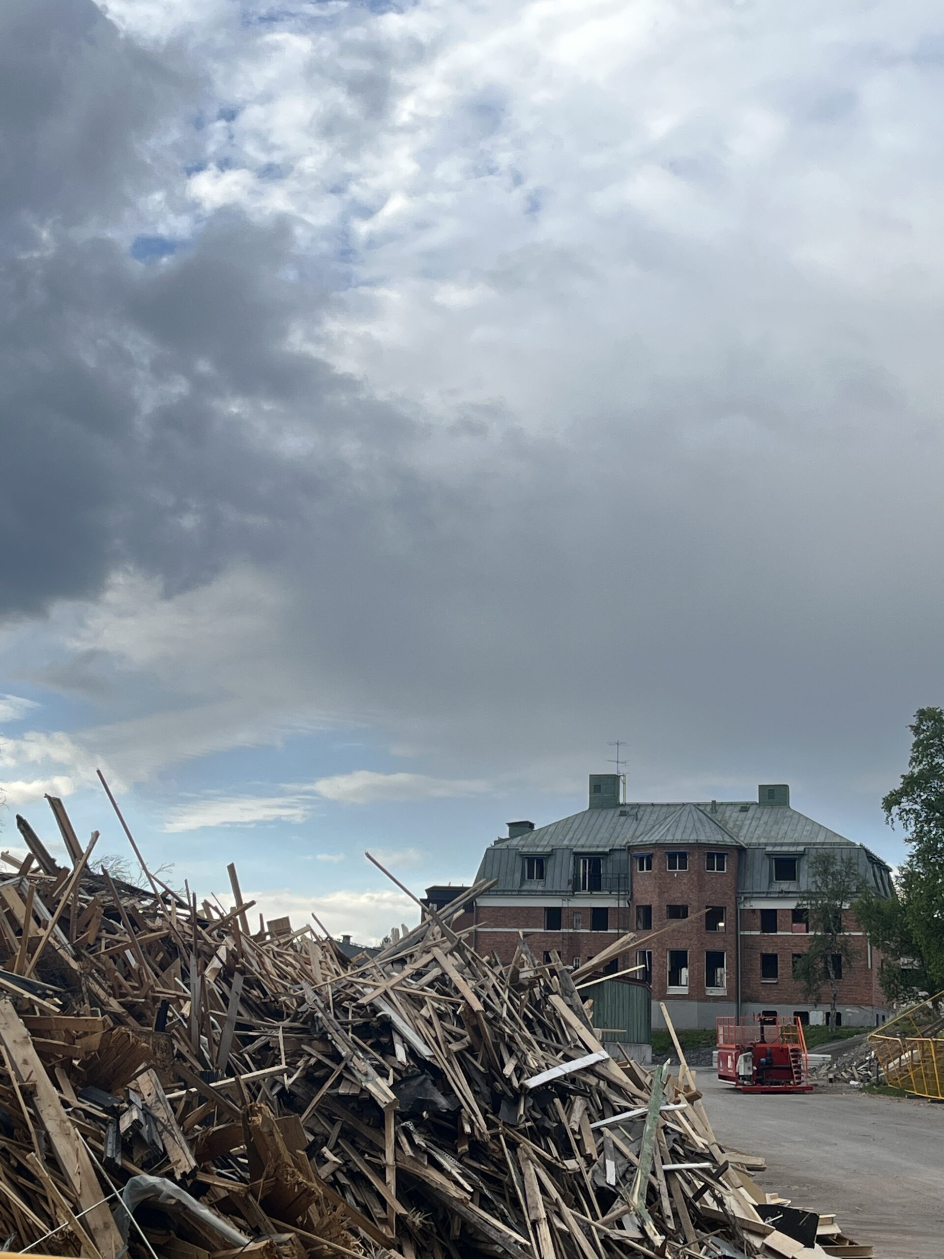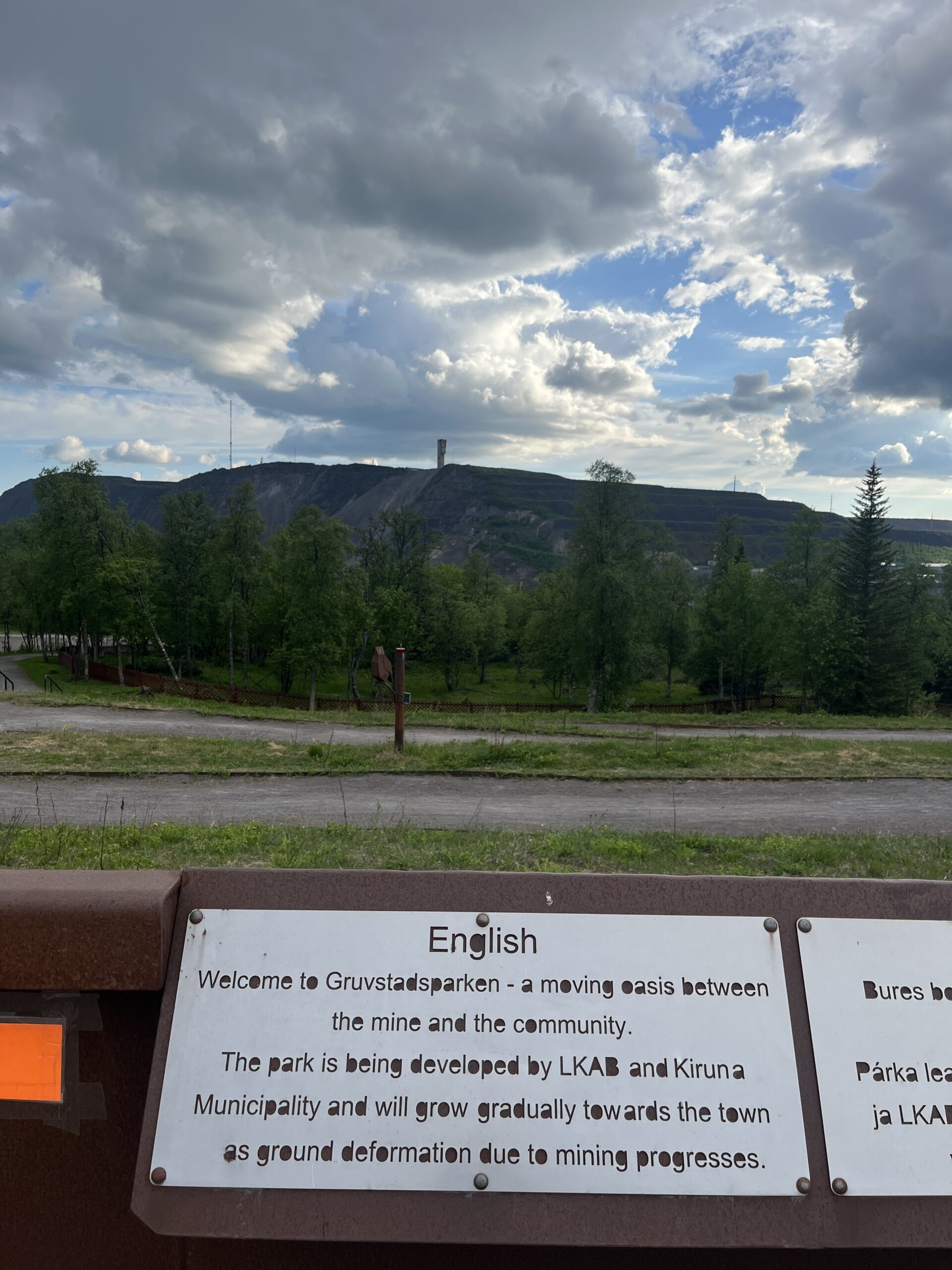Hakkas kiskuma üsna tuuliseks ja jahedaks, tuli ka väike vihmasabin ning mind kiskus tagasi telklasse. Niklasel oli aga kindel plaan käia ära nö vanas linnas, mida tal soovitati külastada. Mõtlesin, et mis selles VANAS LINNAS saab nii erilist olla. Ühel hetkel aga jõudsime koolimajani, mis oli võrega piiratud. Maha jäetud. Kõndisime aia ja majade vahelt läbi, kuni hakkasin aru saama – kõik need majad on tühjad. Terve linnaosa kõikide elumajade, rohealade, koolide ja lasteaedadega on tühjaks kolitud. Selles on midagi kummaliselt kõhedat, sest tavaliselt on tühjad nn kummituslinnad ajapikku maha jäetud. Noored kolinud ära, vanad surnud ning rotid ja luuderohi paiga üle võtnud. See linnaosa oli ka tahtlikult päevapealt tühjendatud elanikest. Kõndisime selles inimtühjas paigas ringi, kuni jõudsime maanteeni, mille ääres oli vaateplatvorm ja park vaatega kaevanduse poole. Osa taevast oli päikseline, osa tume, kuskil taamal sadas vihma. Nõjatusin platvormi äärele ja mõtlesin, et midagi on selles monstrumis tuttavat. Järsku turgatas – see on täpselt nagu Sõrmuste Isanda filmis Isengard! Kurjuse kants. Mitte, et Kiruna rauamaak nüüd mingi kurjuse maapeale ilming oleks, aga võrdlus pädeb (nerd alert!) – ka filmis oli maa-alune kaevandus, mille arvelt hävitati ümbritsevat loodust. Niklas oli mu võrdlusega nõus ja lisas, et me oleme nagu kaks kääbikut kodust kaugel oma teekonnal.