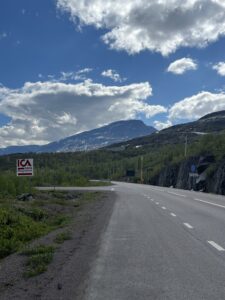 Paarike tuleb Kirunast (jälle), kus mees töötab kaevanduses ja naine kosmoseagentuuris. On ikka ametid siin inimestel. Mind valgustati, et sarnaselt meie kaubandussuhetele Lätiga käivad Norrakad üle Rootsi piiri odavamalt maiustusi, sigarette ja limonaadi ostmas. Norras on tervist kahjustavad kaubad nimelt kõrgemini maksustatud. Naljakas, kuidas riigivahetust on reaalselt näha ka maastikus. Ma ei oleks uskunud, et Norra ja Rootsi saavad nii väga erinevad olla – ühed samad mäestikud ju -, aga Norra poolel muutus maastik järjest jõulisemaks, võimsamaks, dramaatilisemaks. Üha kõrgemad ja teravamad tipud. Patsimehe sõnul on tavaliselt juuni alguses siin veel lumi maas – on üsna haruldane, et suve alguseks on enamus lumest juba sulanud. Vaat kui hästi mul siis läks, sest lumeriideid küll ei oleks osanud ega tahtnud endaga kaasa vedada.