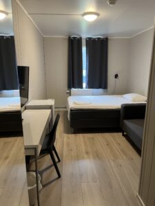 Bodøst Trondheimi on ca 700 km. Tehniliselt on võimalik see vahemaa läbida ka rongiga, kuid see tähendaks 10 tundi istumist, millest ma huvitatud ei ole. Samuti maksab rongipilet ca 120€, mis tundub mulle absurdne. Seega uurisin taaskord Google Mapsi ning valisin vahepealseks peatuseks väikelinna nimega Mosjøen. Mitte, et 50€ rongipilet sinna pluss 65€ majutus kuidagi odavam tuleks, sellele lisaks veel ca 80€ rongipilet Trondheimi, aga noh – girl math. Minu jaoks on väärt see summa pigem mitme päeva peale ära jaotada. Ega ma selle linnakese kohta väga midagi ei teadnud peale selle, et seal on mäed ja jõgi ning võimalus telkida. Vau, šokeeriv Norra kohta, eksole. Esimeseks ööks broneerisin endale eratoa, igaks juhuks, kuna lubas vihma, seega võrkkiiges magamise peale ma lootma ei tahtnud jääda. Kaheks ööks polnud aga majutust üldse võimalikki broneerida, sest mingil põhjusel oli selleks nädalavahetuseks kõik välja müüdud.
