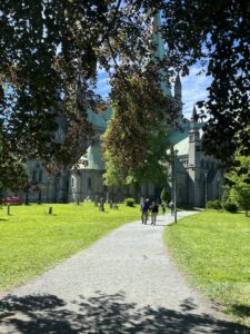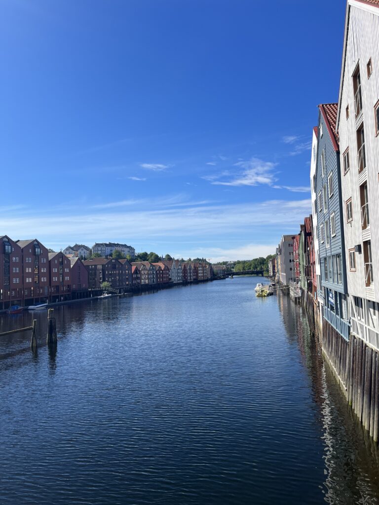 Bakklandet on ülimõnus, kodune linnaosake, selline Bullerby külakese ja Vana-Kalamaja moodi, madalad värvilised puidust majad, kohvikud, mille ees õues lauakesed, poekesed jm. Päik on kuum ja jalutuskäik idülliline. Olen paar kohvikut Google Mapsist välja õngitsenud, kus piltide järgi peaks olema hea kohv. Just nimelt piltide järgi. Kui sa suudad teha kohvile südame, siis järelikult piim ei ole vannivahuks kuumutatud. Valituks osutub Nabolaget Bagelri. Mõnus, hubane, aga samas eklektiline interjöör kutsub istuma. Mul veab, sest kui sisenemisel on mul valida praktiliselt kõikide istekohtade vahel, siis u 10 minuti pärast on terve kohvik ülevoolava jutuvadaga täidetud ning mitmed sisenejad peavad pettunult kohtade puudumise tõttu otsa ringi keerama. Kohv on tõesti täitsa suupärane, ühtlasi aga selgub, et ma ei oska absoluutselt bageleid süüa. Toorjuustu-suitsulõhe sisu lihtsalt lirtsub igas suunas laiali ja kogu mu silmnägu on piinlikult mäkerdatud. Ausalt, kuidas seda sööma peaks, jääb mulle arusaamatuks, paluks algaja koolitust. Kõht täis, patserdan kaugelt paistva kirikutorni suunas, sest mulle meeldib alati reisil kohalikke kirikuid külastada. Mida uhkem, kõrgem, süngem, seda parem. Nidarosdomen on tõsiselt suursugune, kuid autost väljuva pruutpaari tõttu eeldan, et sissepääs sinna on hetkel suletud. Kuna näen eemalt ka piletikassat, eeldan, et tegemist on nagunii tasulise tegevusega ja kirikute eest ma ei maksa rohkem kui annetus küünla eest. Teen tiiru ümber uhke gootikatedraali, kuni jõuan tagasi esiukseni, kus punases kirikurüüs blond neidis asetab mingi tahvlikese välja ja hakkab inimesi lahkelt sisse suunama. Piilun siis ka tahvli peale, kus on ajakava, ning näen, et pulmadeni on veel aega küll. Enne seda on aga nimekirjas…: “Orelimeditatsioonile?” Noh, kuna neiu nii lahkelt kutsub, siis kes olen mina, et keelduda. Üritus tundub olevat tasuta, seega uitan koos teiste turistidega hämarasse jahedasse sisemusse ja võtan istet. Hindan hetkeks oma riietuse sobilikkust, kuid mulle meenub, et kristlikus religiooniruumis õnneks ei pea naised… õieti midagi katma? Tähendab, MIDAGI peaks olema ikka kaetud, lihtsalt mulle ei meenu, et meil mingid reeglistikud selle kohta oleks. Ühel hetkel hakkab härra kirikuõpetaja midagi norra keeles rääkima, kuid läheb sujuvalt üle inglise keelse tõlke peale. Niiviisi kakskeelselt jutlustades juhatab ta sisse muusikapalad ning jääme ootama. Orel lööb viled undama ning mina sulen silmad. Eks see meditatsioon ole niisama suusoojaks öeldud ja vahepeal piiludes märkan, et enamusel mu ümber on silmad lahti, aga ma ei lase end sellest häirida. Niiviisi paarkümmend minutit see muusika hüpleb mänglevast dramaatiliseni, kuni lõpuks kontsert lõppeb. Inimesed plaksutavad hoolega ning mina kirtsutan nina: “On ikka pööbel.” Maast madalast kooris lauldes on mulle taotud, et kirikus ei plaksutata.