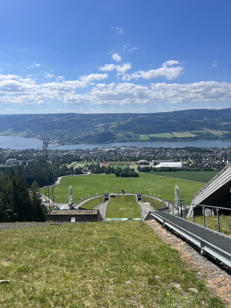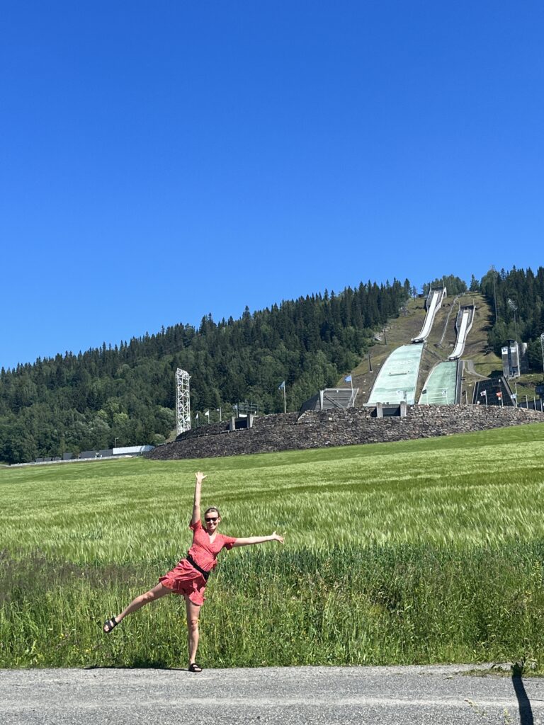 Edu tähistamiseks tõmban trenniriided selga ja lähen teen ühe 30minutise silkamise ära, enne kui temperatuur väljakannatamatuks muutub. Ega ma oma teekonda eriti ette ei planeeri, vaid võtan lihtsalt suuna alla jõe poole ja panen punuma. Jooksen üle Vingnesbrua jalakäijate silla ja tagasi ning suundun siis jõe äärsesse välijõusaali. Ma ei tea, kas asi on selles, et ma pole tükk aega trenni teinud või on õues lihtsalt nii palav, aga mul on tunne, et ma viskan nende üldse mitte nii raskete harjutuste peale varsti sussid püsti. Mulle tegelikult ei sobi ka hommikuti treenimine, seega võib-olla on asi selles. Kuidagi saab midagi igatahes tehtud ja longin tagasi hostelisse, kus õnnestub lisaks enda küürimisele ka lõpuks oma riided puhtaks pesta. Topime Editiga ühiselt riided masinasse, seejärel kuivatisse ja asume ajatäiteks plaani kokku panema. Kuna Edit praktiliselt lonkab, siis pikka matka ette ei võta ning otsustame olümpiaküla kasuks, kus saab suusaliftiga mäe otsa sõita ja suusahüppetorni imetleda. Mina loen ka välja, et kohapeal on võimalik proovida bobisõitu, kuid selleks tuleb leida kelgu kohta 2-3 inimest ning hind on sellel üüratu. Kuna olen raftinguga oma eelarve juba lõhki sõitnud ja adrenaliini koguse kätte saanud, loobun ägedast võimalusest, Editi silmad aga põlevad peas. Tõmbame kleidid selga ja asume vantsima. Hommikujooksu vaated