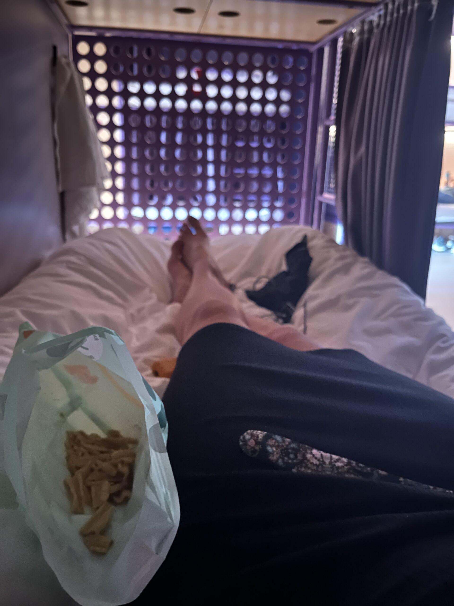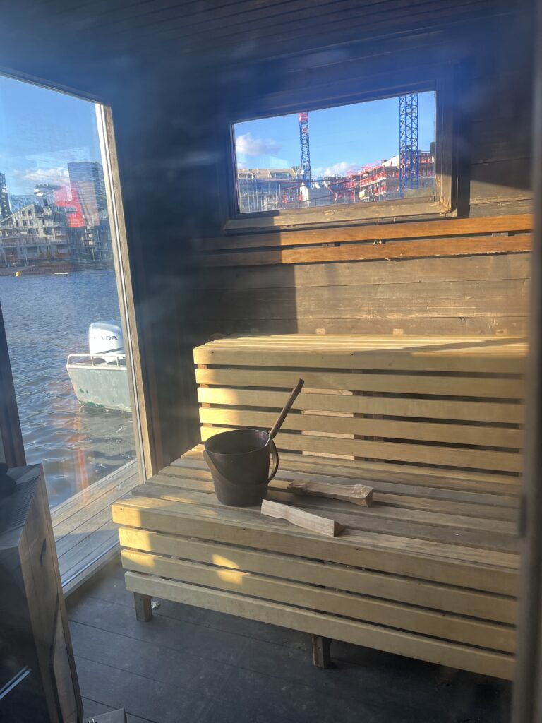 Vahepeal aga on mulle kirjutanud Liina – mäletate, minu endine töökaaslane, kelle juures Trondheimis ööbisin? Nemad on nimelt ka parasjagu peikaga Oslos ning mul on nende käest vaja kätte saada autosse unustatud kõrvaklapid. Liina saadab mulle oma asukohta, mis üllatuseks asub ainult 1,5 km kaugusel minust! Ilm on ilus, tuju hea ja kõmbin eufooriliselt kesklinna poole. Kõik kuidagi voolab õigesti. Saan Liina, tema peika ja peika parima sõbraga kokku teemapoes, kuhu ma ise omal algatusel kunagi ei läheks – anime, mängud ja muu. Liina on aga nagu laps kommipoes, kilkab ringi ja tahab kõike osta. Talutame ta ühisrindel väljapääsu poole ning lähme istume kõik natukeseks tapas‘e baari, kuhu nad sõpradega varem koha on kinni pannud. Minul on aega umbes 45 minutit, enne kui pean uuesti hostelisse naasema, seega võtan ainult ühe veini spritseri, seniks kuni teised laua eelroogade alla looka tellivad. Hostelis vorbin endale kiire õhtusöögi ja ongi aeg juba sauna suunas liikuma hakata. Mere äärde ooperimaja juurde jõudmine ei ole eriti raske ülesanne – tuleb lihtsalt allamäge koguaeg kõndida. Sauna üles leidmine osutub aga oluliselt suuremaks väljakutseks. Esiteks on neid saunasid seal vee ääres oluliselt rohkem kui lihtsalt üks putkake. Teiseks – sa võid ju näha, kus saun asub, aga see ei tähenda, et sa saaks aru, kuidas sinna saab. Mere äär on kaetud sillakeste ja teede rägastikuga, mis sugugi ei ühendu igas kohas. Tiirutame paar ringi, enne kui lõpuks õigesse kohta jõuame.