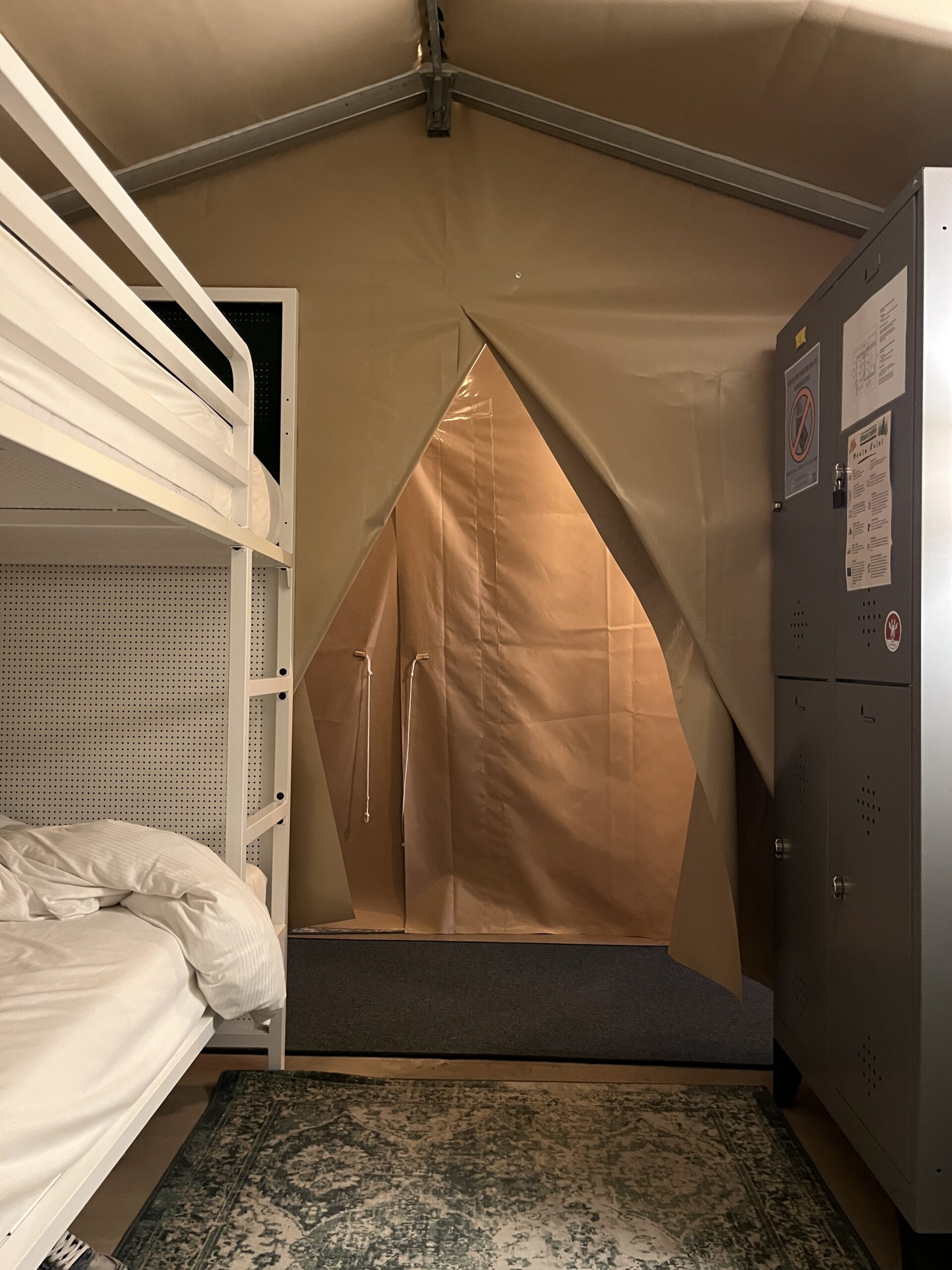 Kopenhagenisse öömaja broneerides selgus, et ega neid odavaid enam-vähem tsentraalse asukohaga seljakotihosteleid nii väga palju ei leidugi. Urban Camper Hostelisse oleks saanud kolmeks ööks 120 euroga, kaheks ööks aga 50 euroga. Ilmselgelt valisin viimase! Hosteli konteptsiooni osas olin veidi kahtlev, sest absurdselt innovaatilise lahendusena oli hostel üles ehitatud nagu “telkla” ehk siis justkui eesmärgiga pakkuda mingit urbanlikku glämpingu kogemust. Reaalsuses oli aga atmosfäär selline, nagu ööbiksid kuskil piiriäärses pagulaslaagris. Seljakotireisija muidugi ei kurda, sest kui sul on voodi, katus pea kohal ja pesemisvõimalus, on elu juba üsna kena. Kahjuks ei olnud selles (ega ka üheski teises) hostelis aga ühiskööki, mis on minu jaoks suur miinus, kuna ise süüa tehes võid kallis suurlinnas korralikult raha kokku hoida. Ka snäkid olid toas keelatud, sest hostelil endal oli ju ööpäev läbi töötav baar, mille pealt raha teenida. Mina end sellest heidutada ei lasknud ning vedasin korvi virsikuid ja mõned kiired snäkid ikka kappi peitu. Hiljem selgus, et minu õigusrikkumine oli üsna tagasihoidlik minu toanaabriga võrreldes, kes voodi all pitsat peitis ning hommikul selle söömist jätkas…