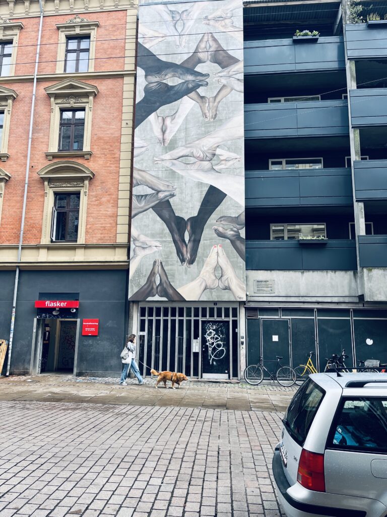 Hosteli asukoht oli üsna omapärane, paiknedes Nørrebro metroopeatuse vahetus läheduses. Mina ei teadnud Nørrebro kohta midagi arvata, aga Booking.com’i lehel oli selle kohta arvustustes paar märkust tehtud. Kiire googeldamine näitas, et jah, tegemist on tõesti kireva ja multikultuurse linnaosaga, kuid sõna “geto” võiks pigem asendada sõnaga “trendikas”. Ja tõesti – sellist linnaosa mina varem kusagil maailmas näinud ei ole. Metroost väljudes olid tänavad ääristatud halal, aasia ja aafrika poodidega, tänavatel esindatud terve maailm, moslemi naised autosilla all mingeid nipsasjakesi müümas, samal ajal nende vahel ringi väntamas pikad taanlased rattakorvidega, vanaemad lastetoolidega, kirevad loomeinimesed sallide lehvides. Taanis on ju kogu ülejäänud elu ehitatud rattateede ümber. Seega kui mujal Euroopa suurlinnades on mul eri rahvuseid koondavates linnaosades ringi liikumine osutunud üsna ebameeldivaks ja šokeerivaks kogemuseks, siis Kopenhagenis on kohalikud ja sisserännanud nii ilusti ja pehmelt omavahel põimunud, et ei pea pead murdma, kas üksi päikseloojangu ajal jalutama minemine on ikka hea mõte ning kas jõuad ikka enne pimedat turvaliselt tagasi. Söögigurmaanina sain aga nautida minu kõige lemmikumat kultuuride sulandumise väljendust ehk toiduturismi. Nimelt asus hosteli kõrval Nørrebro tänavatoidu platsike, kus oli võimalik valida viie toiduputka – tai, aafrika, iraani, kebabi ja halali burgeri – vahel. Mina võtsin esimesel päeval õhtusöögiks falafelitega täidetud pita ning sellele ma ka truuks jäin, käies järgnevatel päevadel sama pitat proovimas veel ka lamba koftade ja halloumiga. Pettuma ei pidanud kordagi ja kuna hommikul enne kella 11 oli veel ka happy hour, tundus nagu tõmbaksin neil naha üle kõrvade selle imeliselt maitsva ja värske toidu eest ainult 4€ makstes.