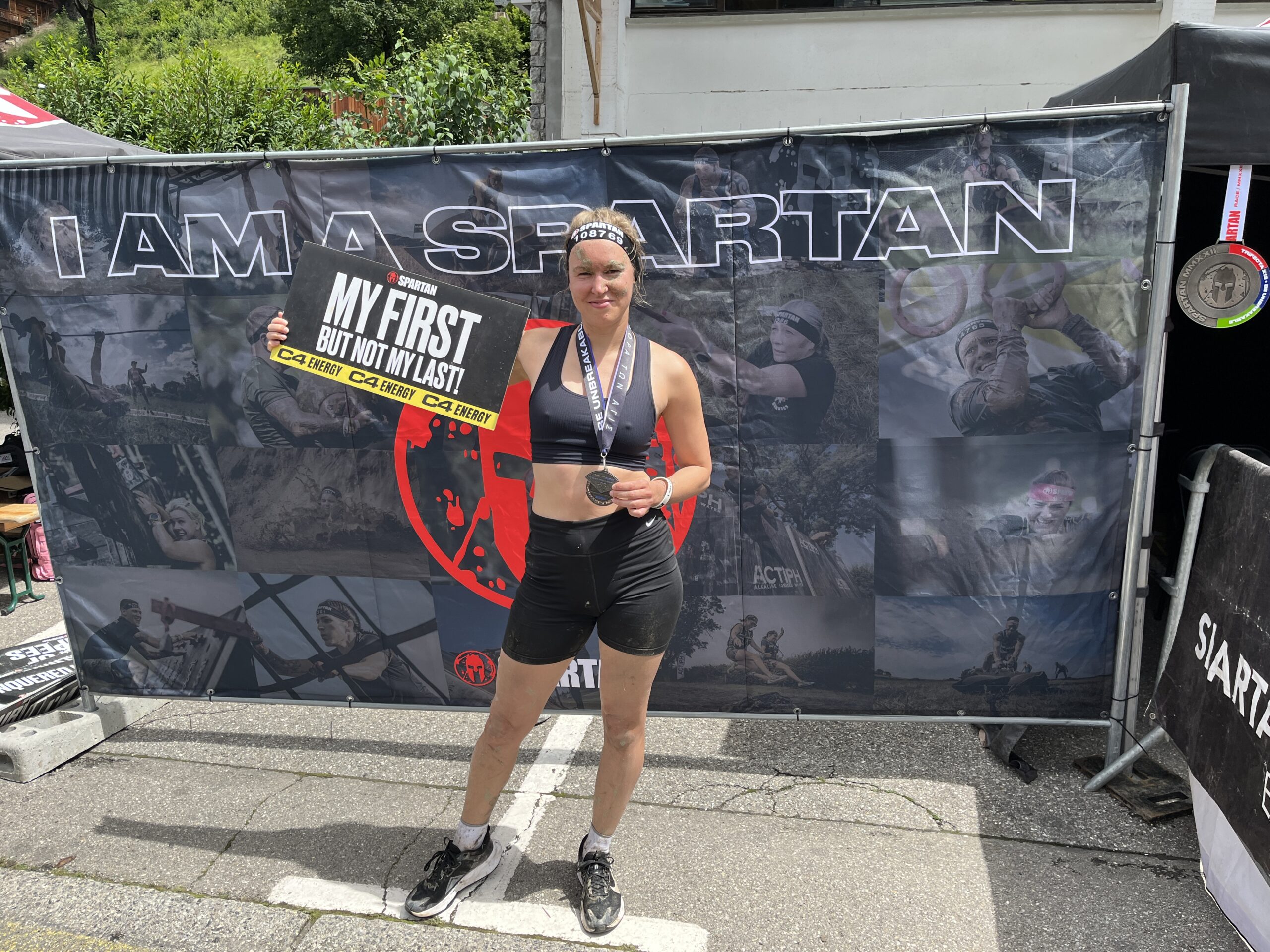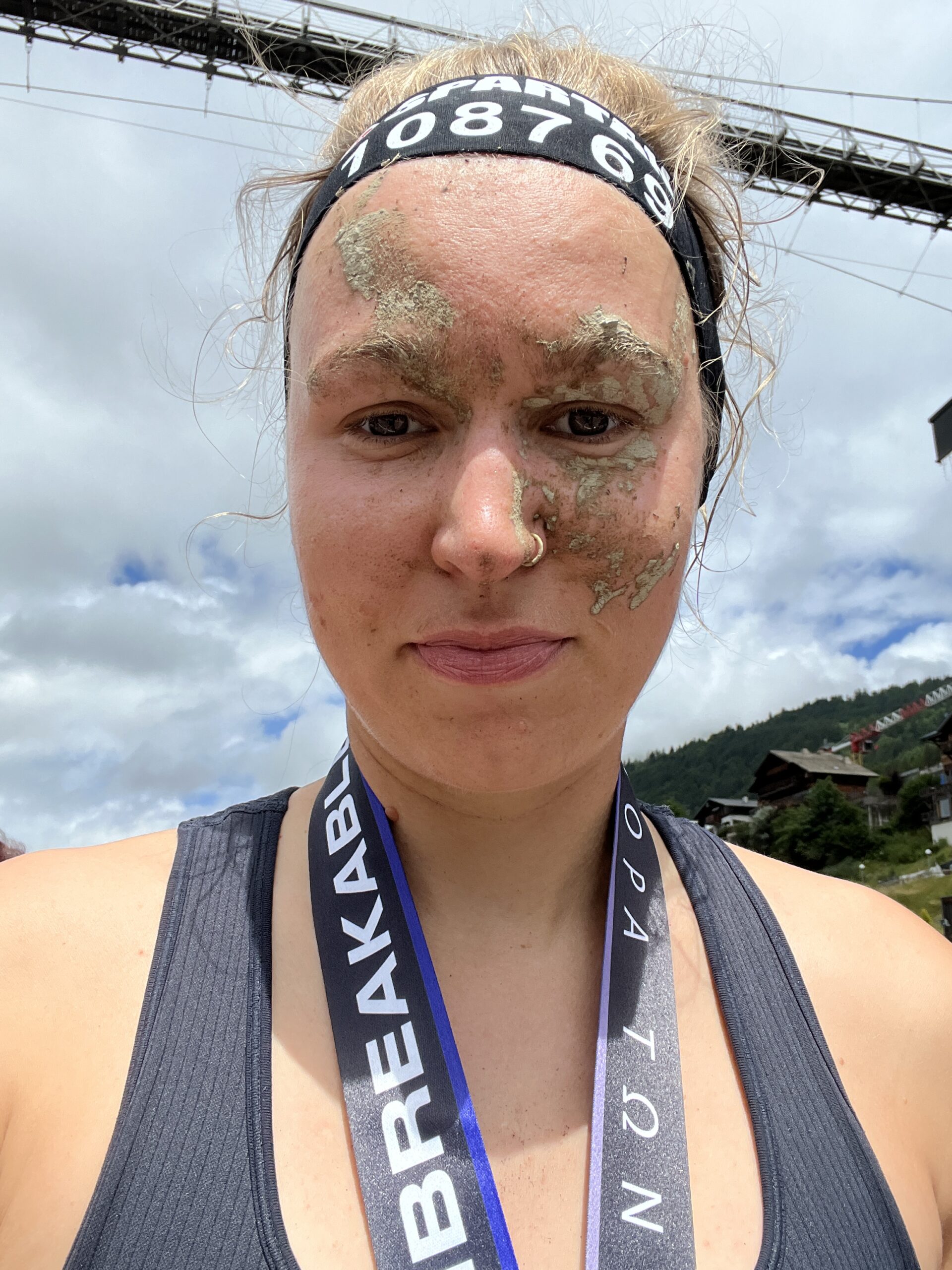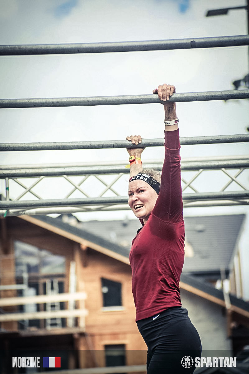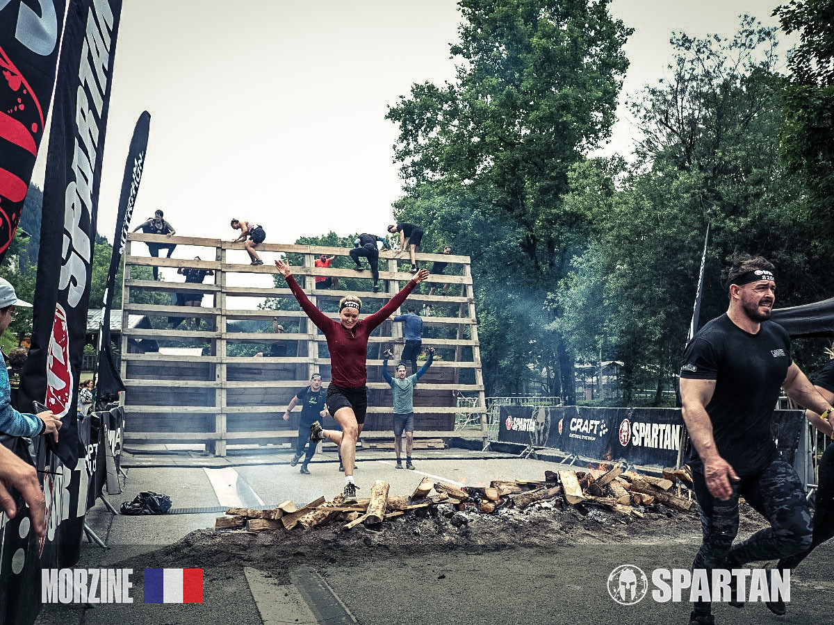 Lõpuks saabub hetk, kus on võimalik hakata mäest alla liikuma ja tundub, et tee pöördub linna poole tagasi. Enne tuleb veel slackline ületada, mille osas olen väga skeptiline, kuna ma pole kordagi suutnud seda varem ületada. Nüüd on jalad all aga täiesti töntsid ju. Minu otsus tuimalt hooga üle kõndida kannab vilja, sest kuigi astun viimase sammu kõrvale, loetakse see sooritus õnnestunuks. Päris paljud mehed jooksevad seal muide penaltiringi. Edasine osa on suuresti allamäge või sirgel maal jooksmine, mis on vahelduseks nii meeldiv puhkus. Keha juba vaikselt streigib ja karjub, et kas võiks äkki seisma jääda ja selle lolluse lõpetada. Jäänud on veel viimane osa Morzine’i all-linnas, väga finiši lähedal, kus on aga enne päris mitu takistust vaja läbi. Kõigepealt horisontaalne ronimissein (läbitud esimese korraga), odavise märklaua pihta (kolmanda korraga), järjekordne monkey bars (penaltijooks) ja viimaks üks päris korralik puidust ronimissein. Ja siis ei jäägi üle muud, kui hüpata üle lõkke ja võtta finišijoont ületades medal vastu. Uskumatu tunne! Ongi lõpuks see kannatuste rada läbi. Mida saavutust mu keha poolt!!! Ja loomulikult ka mõistuse poolt, kes tahtis korduvalt püssi nurka visata. Tehtud, tehtud, tehtud. Meeletu uhkus ja rahulolu iseendaga.