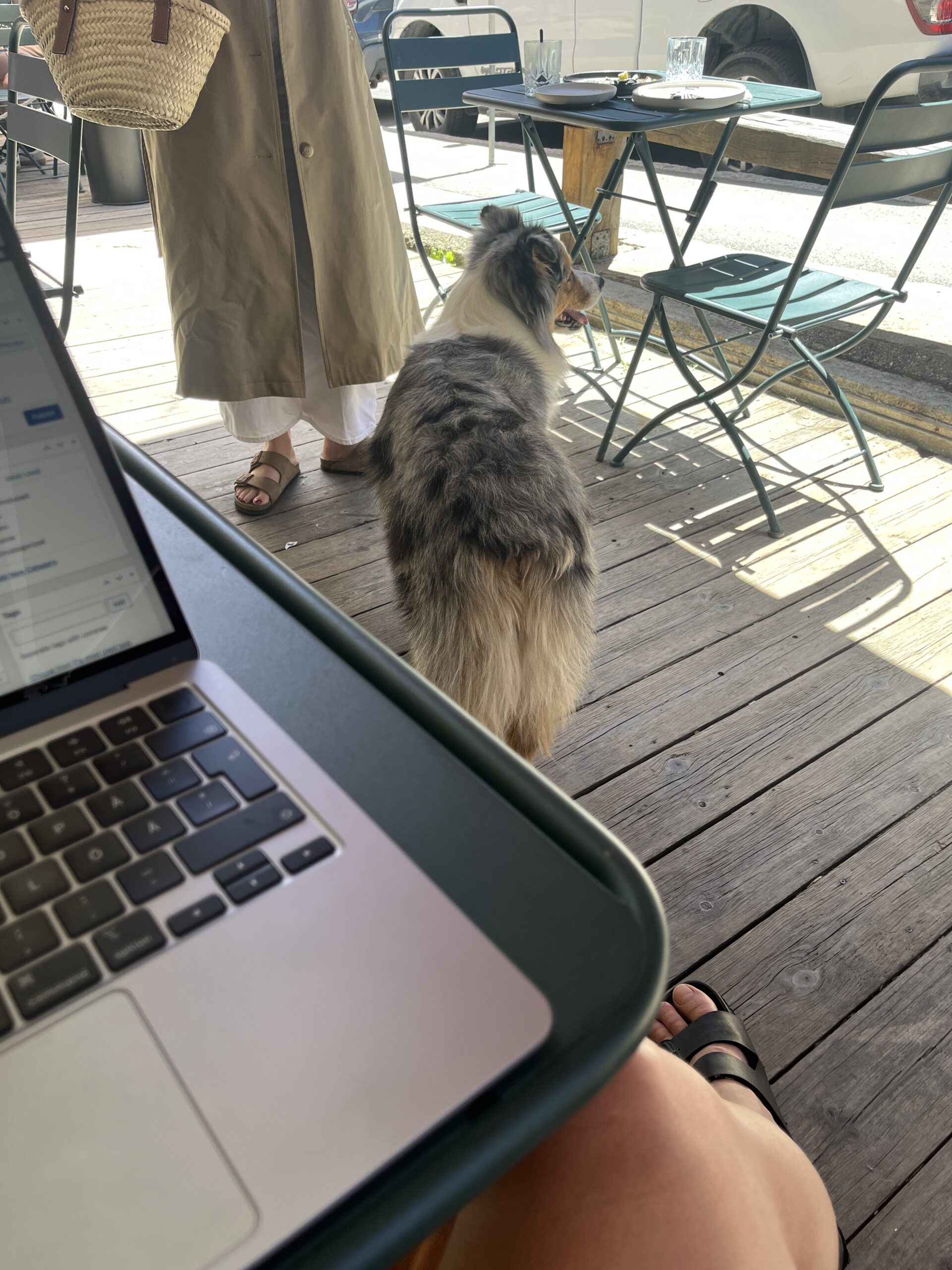 Olen ühest küljest õnnelik, et otsustasin veel üheks päevaks majutuse broneerida, kuid teisest küljest on kahju, et pean seda linna üksi kogema. Morzine on nii eriline ja teistsugune koht, et oleks lahe seda jagada. Jalutan mööda linna ja otsin kohta, kust saaks head kohvi. Mäest üles suunduva linnatänava ääres on palju poekesi ja baare ning lõpuks jõuan kahe kõrvuti asetseva kohviku juurde. Heidan kiire pilgu mõlema terrassile ning otsustan roheliste toolidega kohviku kasuks, mis tundub kuidagi kutsuvam. Tellin endale flat white’i ja porgandikoogi sõbralikult teenindajalt ning võtan terrassil istet. Kohv on suurepärane ja ka kook ei valmista pettumust. Mööda kõnnib täiesti lahtiselt imeilus austraalia karjakoer, kes tundub olevat kohvikus oma jope. Ta kõnnib laua juurest laua juurde, nuusib kas ehk midagi head pakutakse, ning siis keerab kellegi jalgade juurde end kerra. Milline mõnus atmosfäär. Oleks mul ometi põhjust siia linna kauemaks jääda, kuid mind ootab hoopis kaks nädalat Zürichis. Tuleb siis järelikult siia millalgi uuesti tulla. Ja sõbrad kaasa võtta! Lähen tagasi kohvikusse, et endale blogimise kõrvale ka üks jää-matcha tellida, kui märkan silti “otsime baristat”. Vaatan hetkeks silti, kuid liigun edasi, sest mind ootab ju koerahoid ja edasi Caroline kas Frankfurdis või Nizzas, nii et üsna mõtetu on isegi küsida midagi selle kohta. Aga kui äge oleks suvaliselt sellises mägilinnas kohvikus töötada!