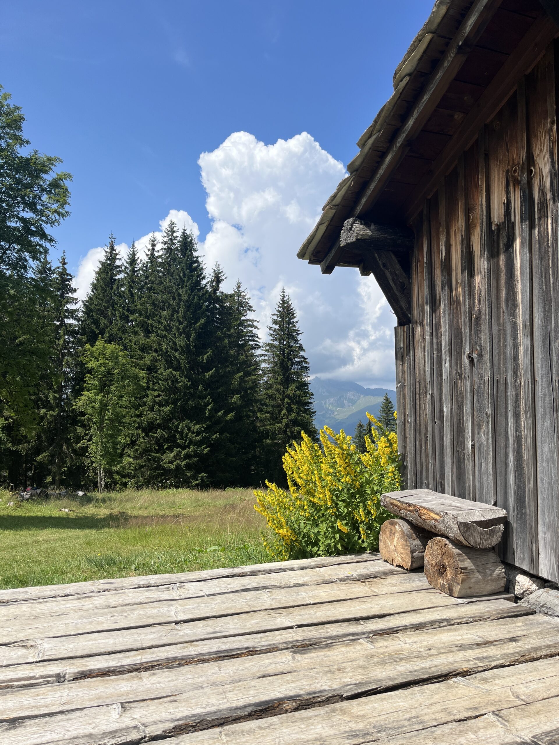 Matka algus on nii järsk, et ma olen esimese 20 minutiga täiesti keel vestil. Rosie hingeldab ka veidi ja tunnistab, et vähe sirge nurga all on see start, aga pole hullu, edasi peaks ikka laugemaks minema. Noh, ei läinud. Umbes tund aega järjest saan ma vaadata Rosie kondiseid jalgu enda ees kalpsamas, samal ajal kui hing paelaga kaelas temaga kaasas üritan püsida. Paraku tuleb mul siiski iga kümne minuti järel puhke- ja joogipausi nõuda, sest pool kopsumahust kulub lobisemisele. Läbi saavad hekseldatud elulood, perekonnad ja sugulased, töökohad ja kooliteed. Rosie on 22aastane, päris Inglismaalt ja üles kasvanud maal ning kolis Morzine’i eelmise aasta novembris, sest sai võimaluse tulla siia kohalikku arhitektuuribüroosse praktikale. Nüüd aitab ta sisearhitektidel disainida kohalikke mägionnikesi. Praktikaperiood saab kahjuks septembri algusega läbi ning neiu peab naasema vihmasele kodumaale, et ülikooli viimane aasta ära lõpetada. Saan teada, et tal on ka vennad, kes on kaksikud ning kellest üks on gei ja teine homofoob. Kõlab nagu suurepärane bande.