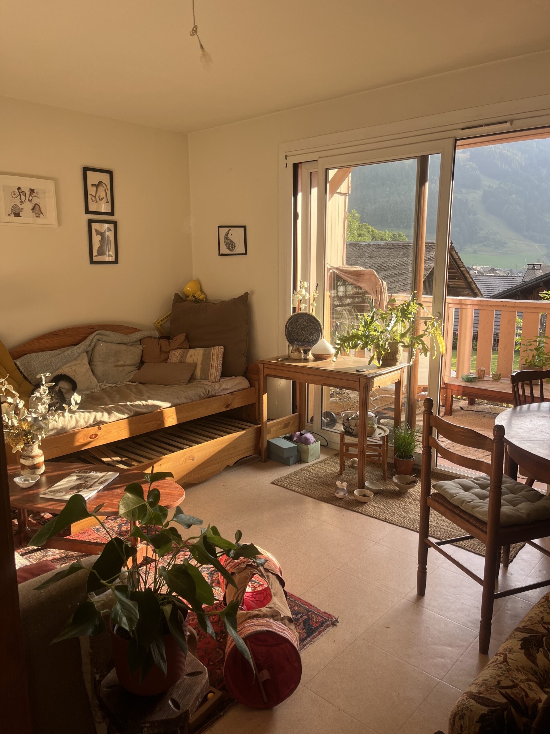 Töölt korterini on ülesmäge ca 15 minutit, allamäge u 10 minutit, seega väga hea asukoht, ainult et ma olen kohale jõudes higist läbimärg. Südasuvine päike mägedes ei hellita, tõusumeetrid ka mitte. Jõuan kokkulepitud aadressile, kus vaatab mulle otsa päevinäinud kahekorruseline kooruva roosa värviga puitmaja. Huvitav, sellist teist ma siinkandis polegi kohanud. Kate hilineb veidi, seega on mul aega ümbrust uudistada. Koht on vaikne, mõni üksik auto möödub minust, ümberringi on madalad elumajad, väike kabel, maja taha jääb mägijõgi ja mulle juba tuttav Point de Ressachaux teerada, mida mööda Rosie’ga ronisime. Kate saabub kiirustades ja vabandades, mis tundub olevat tema põhiolek – vadistav, kiirustav ja natuke peata. Siseneme maja pimedasse koridori, mis on täis kola, ning ronime treppi mööda teisele korrusele. Kate logistab võtmega, sest lukk on vana ja ei tööta hästi, ning sisenemegi korterisse. Vasakule jääb pikk kitsas koridor, kust avanevad paremale uksed kööki ja elutuppa. Mõlemad on suurte akendega ja mõnusa õhtuvalgusega ning sisustatud eklektilise stiiliga – palju pisikesi detaile, vaipu, pilte, taimi, segu kodusest ja päevinäinud mööblist. Tervest korterist on tunda Kate’i head maitset ja silma, kuid asju on minu maitse järgi naa-aatuke palju. Siin-seal pistavad oma nina välja surfi- ja lumelauad ning mägijalgrattad. Elutoas pikutab triibuline emane kass, kelluke kaelas. Kiisuga oleks küll tore elada! Korteris on üks eraldi WC, üks vanniga vannituba ning üks WC koos dušiga. Edasi pöörab koridor paremale, kus on järjest kolm magamistuba – Emily oma, keskmine tühi ja koridori lõpus kõige suurem Kate’i enda oma. Kate’i ja Emily magamistoad näevad väga õdusad välja, samuti ohtrate nipsasjakeste, käsitöö ja dekooriga rikastatud; keskmine magamistuba on natuke nagu vaeslaps nende kahe keskel – kõle, väike ja kitsas. Kõiki kolme magamistuba liidab väljaspoolt ühine rõdu, elutoa ja köögi akende taga on teine rõdu. Ma ei suuda otsustada, mis tundeid see korter minus tekitab. Ühest küljest saaksin kohe sisse kolida ja probleem lahendatud, kodu olemas. Teisest küljest õhkab Kate’ist natuke range käe ja piinliku viisakusega korterikaaslase energiat. Kate vangutab pead, kui kuuleb, et soovin üürida tuba ainult viieks nädalaks, sest tavaliselt nad ei poolita niiviisi kuid. Ka ei ütle ta mulle kohe kindlat hinda, sest väidetavalt peab enne tegema arvutusi – nii lühikese rendi hind on kallim kui pikemaajalisel üüril, sest “pärisüürnik” panustab rohkem korteri ülalpidamisse, sisustusse ja kulutustesse. Minu küsimuse peale, kas ma tohiksin ka külalisi kutsuda, kuna paar sõpra on andnud lootust külla lennata, Kate jäigastub tuntavalt ning küsib, kui kauaks need sõbrad siia tuleks. Kehitan õlgu, sest ega need lubajad enamasti päriselt ei tule, lihtsalt uurin võimalusi. “Meile võib jääda maksimum kolmeks ööks, sest ühel tüdrukul kolis ema kuuks ajaks sisse ja see pole teise suhtes aus,” lausub Kate tõsiselt. See ei tundu just hea algus ning tunnen, kuidas minu entusiasm seda tuba üürida kahaneb.