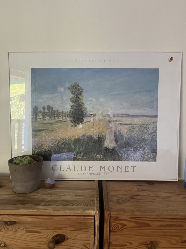 Asume siis oma sinkavonkalisele teele Thononi suunas, kui noormees teeb veel ühe peatuse linnaääres paiknevas supermarketis – külmad karastavad joogid on puudu! Jään autosse istuma ja tunnen, kuidas peasall pitsitab. No nii ebamugav on see olukord. Teine pingutab ninast vere välja, aga mina valiks nüüd juba pigem jalgsi Thononi kõndimise. Lõpuks siis alustame siiski oma teekonda, muusika mängib, päike paistab ja mul on vaba päev. Pole see asi nii hull midagi. Jõuame linna pärast kella 12st, mis tähendab, et kuulus Emmausi kirbukas on juba kinni, aga kohalik komisjonipood on täitsa avatud. Minul oleks vaja lühikesi teksapükse ja tuppa sisustuselemente, eelkõige ühte suurt postrit või maali. Mida klišeelikum, seda parem. Kirbukas on noormehega isegi täitsa lõbus, sest pood on täis igasugu vana kola, ilusaid ja tobedaid nõusid, vaase, mööblit, pilte, riideid, vinüülplaate jne jne. Leian ühel hetkel hunniku maailmakunsti postreid – van Gogh, Monet, Manet… Aga hinnad on krõbedad, 20+ eurot ühe mitte-maali eest! Minu mentaalne eelarve oli umbes 10€. Sobivaid küünlaid ega küünlajalgu ka kahjuks siit ei leia, seega lepin väikse hõbekandiku ja lillepotiga. Lähen vaatan uuesti neid maalipostreid, sest üks kaunis Monet, mis sobiks ideaalselt mu tuppa, ei anna rahu. No hea küll, panen siis 20€ hakkama. Lahkun uhkelt oma suure raamiga.