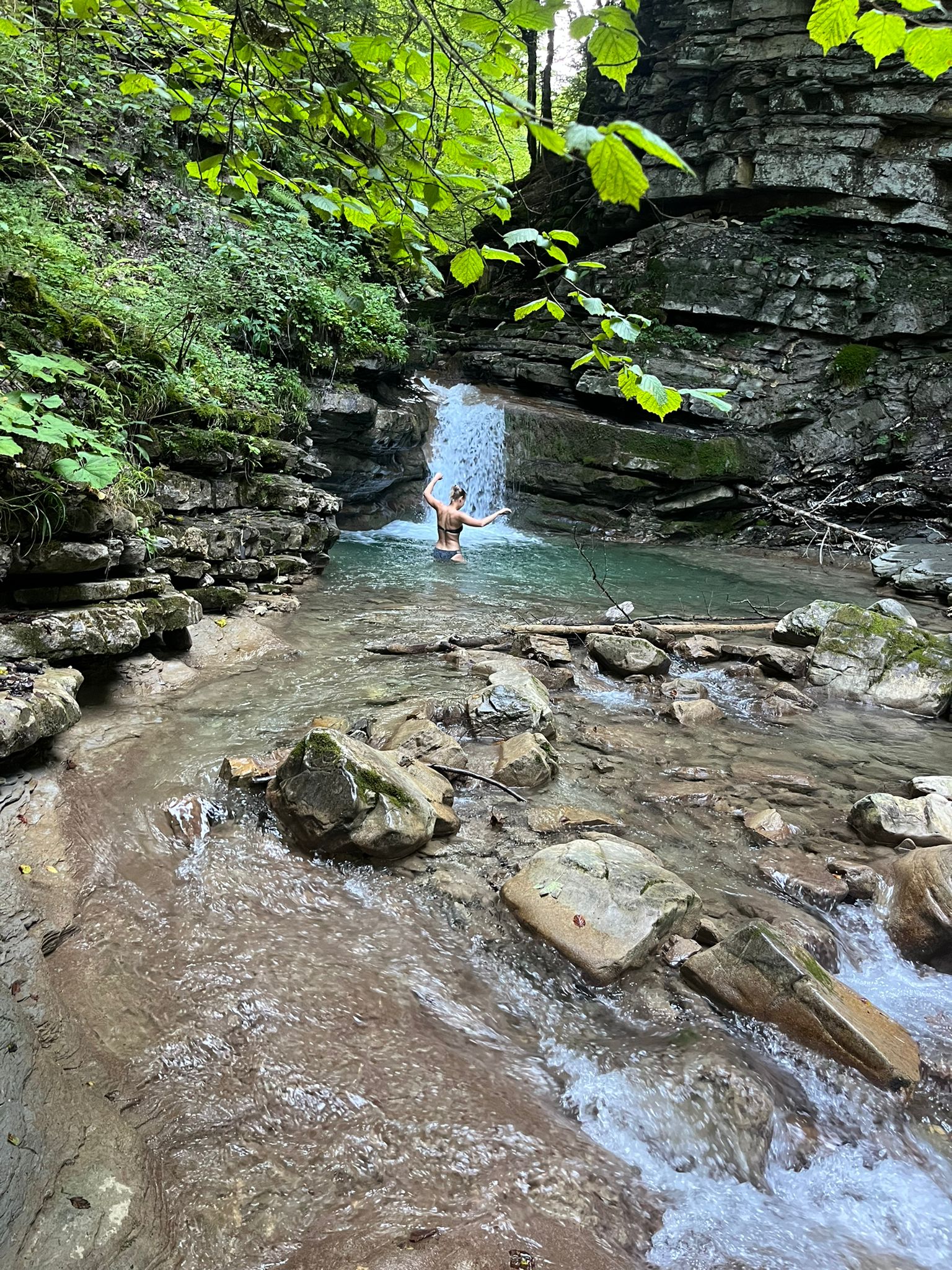 Pärast järve ääres pikutamist lasin Emilyl end viia kohvikusse, toksisin ühe postituse valmis ja võtsimegi tee ette Les Gets’sse. Aasia pood oli sel korral küll kinni, aga mägiraudtee järjekorras hüplesime itsitades nagu kaks ärevikku muiste. Järjekord oli piisavalt pikk, et üksipulgi endale selgeks teha, kuidas see masinavärk ikka käib ja kui tõenäoline on sealt välja lennata ja end vigaseks kukkuda. Mägiraudtee sõiduriist näeb põhimõtteliselt välja nagu alusel autoistu, kuhu end rihmadega kinni paned. Külgedel on kaks kangi, millega saad kiirust maha pidurdada, ja niimoodi sind mööda metallrada püstloodis üles sikutama hakataksegi, et siis lustlikult röökides sealt sinka-vonka alla kihutada. Olin seda tegelikult juba Šveitsis teha tahtnud, sest seal asuvad maailma kõige suuremad ja pikemad mägiraudteed, kuid kuna need asusid minust liiga kaugel mägedes, pidin selle amatöörsema variandiga leppima. See osutus aga saatuse poolt heaks valikuks, sest mul pidi seal juba piss natuke püksi tulema. Võtsime Emilyga eraldi “autod”, mina ees ja tema natukese aja pärast järel. Mina kihutasin ikka mõnuga sealt alla, ise terve aja hüsteeriliselt naerdes ja karjudes. Oi, kui vabastav tunne see oli! Kuigi sõit oli üsna lühike, siis tulime sealt mõlemad eufooriast värisedes maha, Emily mind iga natukese aja tagant kõvasti kallistades, sest meil mõlemal oli hirm täitsa naha vahel olnud enne laskumsit. Edasi ühinesin Emily ja tema kahe töökaaslasega “haldjabasseinidesse” ehk Fairy Poolsidesse ujuma mineku seiklusega. Need on siis sellised loomulikud väiksed üksteise otsa tekkinud kosekesed kivide vahel. Sinna ronimine sutas aga tõeliseks ellujäämiskunstiks, sest raja alguses oli tegelikult silt “matkarada suletud” ja ega sealt mingit otsest rada enam polnudki alles. Roomasime kuidagi aelgaslelt poolkülili alla koskede juurde ja jäime nõutult vaatame seda mullast lahtiste kividega seina – kuidas siit muidu üles tagasi peaks saama? Kehitasin õlgu, viskasin riided pealt ja ronisin esimesse “mullivanni”. Emily töökaaslane prantslanna Laura lõdises kaldal meie kõigi riiete all ja keeldus vette tulemast, sest jõgi ise oli nii külm, et selle kohimisega kaasa liikuv õhk oli üsna jäine. Kui Emily kord oli vaikselt vette tippida, tõmbasin oma salakaamera välja ja pistsin aga klõpsutama ning enne talle näitamist, kustutasin ära kõik kaadrit, mis vähegi kehva nurga alt said võetud. Kui Emily veest välja tuli lükkasin talle ekraani nina ette: “Näed, vaata kui kuum sa bikiinides välja näed!” Emily vaatas kihistades ekraani ja tunnistas, et kuule, täitsa kobedalt sai pildile jäädud küll. Andsin konkreetse käsu nüüd kaadrid ka peikale edastada. Emily lubas sõna kuulata. Edasi pani kõik kiirelt riidesse ja tirisime järgemööda üksteist käsi- ja jalgupidi mööda kallakut üles. Hiljem taastusime kohalikus pubis õlleklaaside taga.