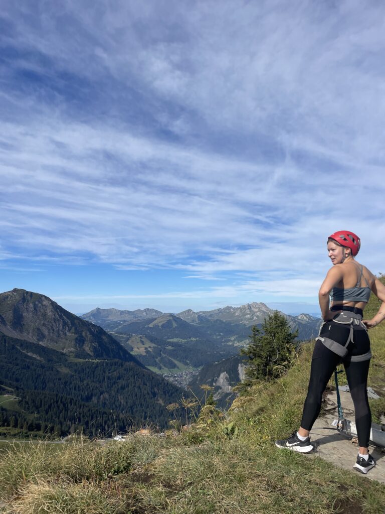 Lisaks ühendas meid Kate’iga huvi spordi ja seikluste vastu. Kate nimelt oli pikamaa maastikujooksja – noh, selline, kes läheb ja sirkab võistlustel, kus joostakse paarkümmend kilomeetrit mägedes. Samuti käis ta sageli sise- või välitingimustes mägironimas või sõpradega mitmepäevastel matkadel. Oma viimasel nädalal ilmusin Kate’i magamistoa uksele ja kurtsin rasket elu – tahtsin nii väga enne lahkumist minna paraplaaniga tandemsõidule, sest oma esimest päevast Morzine’is olin neid pidevalt taevalaotuses hõljumas pidanud imetlema ja kadestama. Hinnad kusjuures ei olnud üldse kallid, nii 90-120€ esmase 15minutise sõidu eest. Millegi pärast aga elu võitles mulle väga selle plaani elluviimisel vastu ja kõikjalt sain kas vastuse, et aegu ei ole pakkuda, või ei vastatud mulle üldse. Halisesin, et kui saaks vähemalt Via Ferratatki tegema minna, oleksin rahul, aga üksi ei saa sinna kuidagi ilma autota minna ja hirmus oleks kah. Tahaks ikka kellegagi koos! Olin kahele noormehele selles osas vihjeid teinud, aga no need oli plaanide elluviimise võtmes üsna ebausaldusväärsed tüübid. Seega pöördusin oma viimases lootuses naiste poole! Kate hakkas kohe agaralt kaasa mõtlema ja lubas, et me läheme kindlasti ja teeme selle ära! Uuris natuke enne sõpradelt, et kas keegi tahaks kambakesi äkki minna. Mina kutsusin ka Emilyt kaasa, kes vajus oma tooli sisse kössi ja ütles, et tema kardab nii väga kõrgust, et pea hakkab ringi käima, ja seega ei ole see üldse viis, kuidas ta oma aega tahaks veeta. Läksimegi siis ühel pühapäeva hommikul Kate’iga kahekesi kõigepealt InterSporti, et sealt Via Ferrata varustused laenutada. Kui ma nüüd õigesti mäletan, siis 10€ eest anti kotike koos rakmete ja kiivriga meile sealt kaasa. Sõitsime siis kõrvalasuvasse suusakuurorti Avoriaz, mis suvekuudel on täiesti väljasurnud ja tühi kummituslinn. Olin üllatunud, et ärid lihtsalt kinni istuvad, kui Morzine’is olid kõik majutusasutused täisbroneeritud ja restoranidesse jagus kliente ohtralt. Via Ferrata ise oli täpselt see, mida ma olin tellinud – nii hirmus, et tahaks natuke püksi pissida. Via Ferrata tähendab siis sellist rada, mis on ehitatud mööda mägenta konksude ja trossidega ning sind lahutavad mustaks märjaks plekiks kukkumisest julgestusrakend, mille kahte karabiini sa muudkui kinni-lahti edasi klõpsutad. Mina arvasin, et see on rohkem nagu selline seiklusrada Nõmmel, aga tegelikult oli hetki, kus jalgu polnud mitte kuskile mujale toetada, kui libeda kiviseina pragudesse, endal samal ajal kõik lihased kehas pingutusest ja hirmust värisemas. Proovisin keskenduda hingamisele ja enda ette vaatamisele, Kate taamal muudkui hops ja hops edasi liikudes. Ta oli väga julgustav ja ergutas mind, et ma olen väga tubli ja saan hakkama ja see kõik on tegelikult äraütlemata lihtne. Mina samal ajal peas teda ja tema kerget kekslemist vandudes, ise mõtlemas, et kui ma nüüd enam edasi ei suuda minna, kas siis helikopter tuleb mulle järele? Lõpuks siiski suutsin hingamisega ärevust hallata ja raja lõpuni teha. Tagasi raja algusesse jalutades rääkisime enda mõtetest ja kehalistest kannatustest üle olemisest, vastupidavusspordi võludest ja elukestvast keha arendamisest kõikvõimalikes suundades.