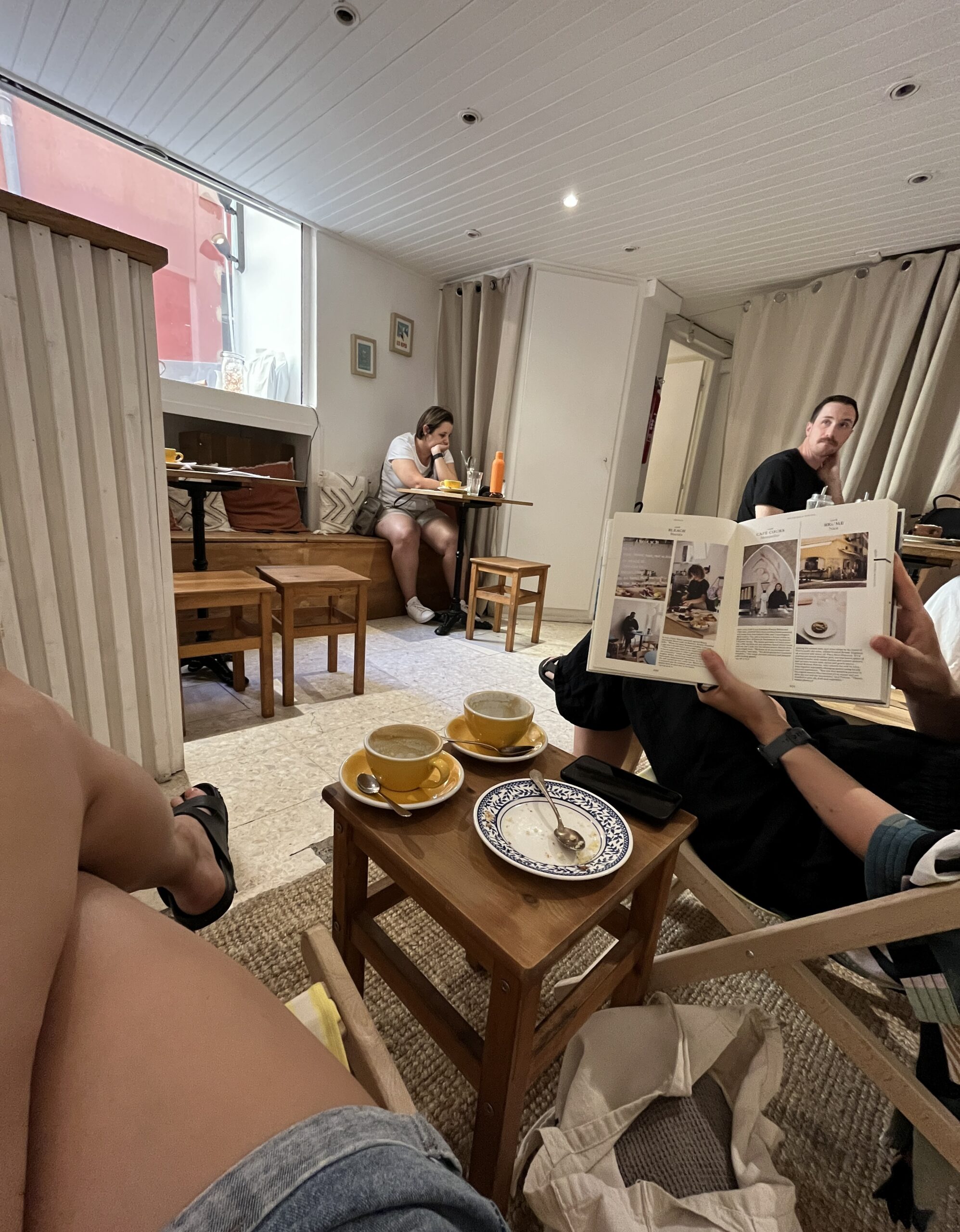 Kolmanda päeval on märksõnadeks kohv ja šoppamine. Päeva alustame väga kõrge hinnanguga Brume kohvikus, kus on peale hea kohvi ja koogi veel väga mõnus sisekujundus ja ohtralt raamatuid. Istume rannatoolidesse ning sirvime järjest foto-, reisi- ja disainiraamatuid. Seejärel käime kahes vanalinna kaltsukas, sest preilil on hädasti vaja mingit kampsuni või jaki moodi asja. Õhtud on jahedad ja midagi on vaja endale peale visata. Esimene külastatav poeke kannab uhket nime Caprice Vintage Shop ja on sama peen ka seestpoolt. Leian sealt karjuvalt ägeda suure karvase kampsuni, mis küll oma hinnasildi poolest ei ole teps mitte praktiline valik, kuid nii Piret kui mina vahime mind selles ja ohhetame, et see ju kannab lihtsalt minu nime! Jätan kampsuni raske südamega maha ning luban tagasi tulla, kui midagi muud ei leia. Teine kaltsukas on liiga “90ndate dress”, seega ka siit väljun tühjade kätega. Lõpuks pöörame suuna hoopis H&Mi poole, sest midagi peab see inimene ju kandma. Sealt väljun kotitäie aluspesu, uute päikseprillide ja õnneks ka kampsuniga. Oma uue varandusega suundumegi randa mõnulema ja oma lõunaampse hävitama. Laine on üsna hulluke täna ning veest väljasaamine valusate veerevate kivide najal on paras väljakutse. Kui meie oma nobedate koibadega saame veel selle ülesandega hakkama, siis ootamatult saab meist nüüd pensionäride vabatahtlik rannavalve. Nimelt jälgime mõnda aega ühte tädi lainetes rullumas, härra abikaasat prouat käest sikutamas ning lõpuks korraldame Piretiga neile päästeoperatsiooni. No ei saa rannas rahulikult istuda, sest peame vaestel penskaritel silma peal hoidma. Seejärel tuleb mul deidile minna, kuhu ma üldse minna ei viitsi. Piret aga veenab mind, et mulle on seda ikka vaja. Kõmbin siis kilomeetrikese mööda promenaadi kokkulepitud rannabaari – kohta, kuhu mina oma jala ja rahakotiga kunagi ise vabatahtlikult sisse ei astuks. Saabub meeldiv härrasmees, kes päriselus näeb oluliselt lühem ja rohkem marokolane välja kui piltidel. Kuna ma olen aga nagunii teel Marokosse, siis tundub olevat mõistlik väikest eeltööd teha. Noormees on tark ja viisakas ning selgub ka põhjus, miks ta päriselus ja fotodel nii erinev välja näeb – tegemist on hooajavälise kulturistiga ehk siis vahe piltidega on umbes 7 kg keharasva. Vitsutame trühvlimajoneesiga friikartuleid ja lürbime viieteisteuroseid kokteile. Pole paha. Lõpuks on aeg laiali minna ning härra sõidutab mind viisakalt autoga koduukseni. Mingeid üritusi ei tehta, isegi ei üritata järgmist kohtumist kokku leppida, ainult et noorhärra ikka kiidab terve tee, kuidas minu seltskonnas on nõnda meeldiv ja kahju, et see aeg lõppeb ja kuidas ma ikka üks eriline daame olen. Suurepärane, tänud, head ööd!