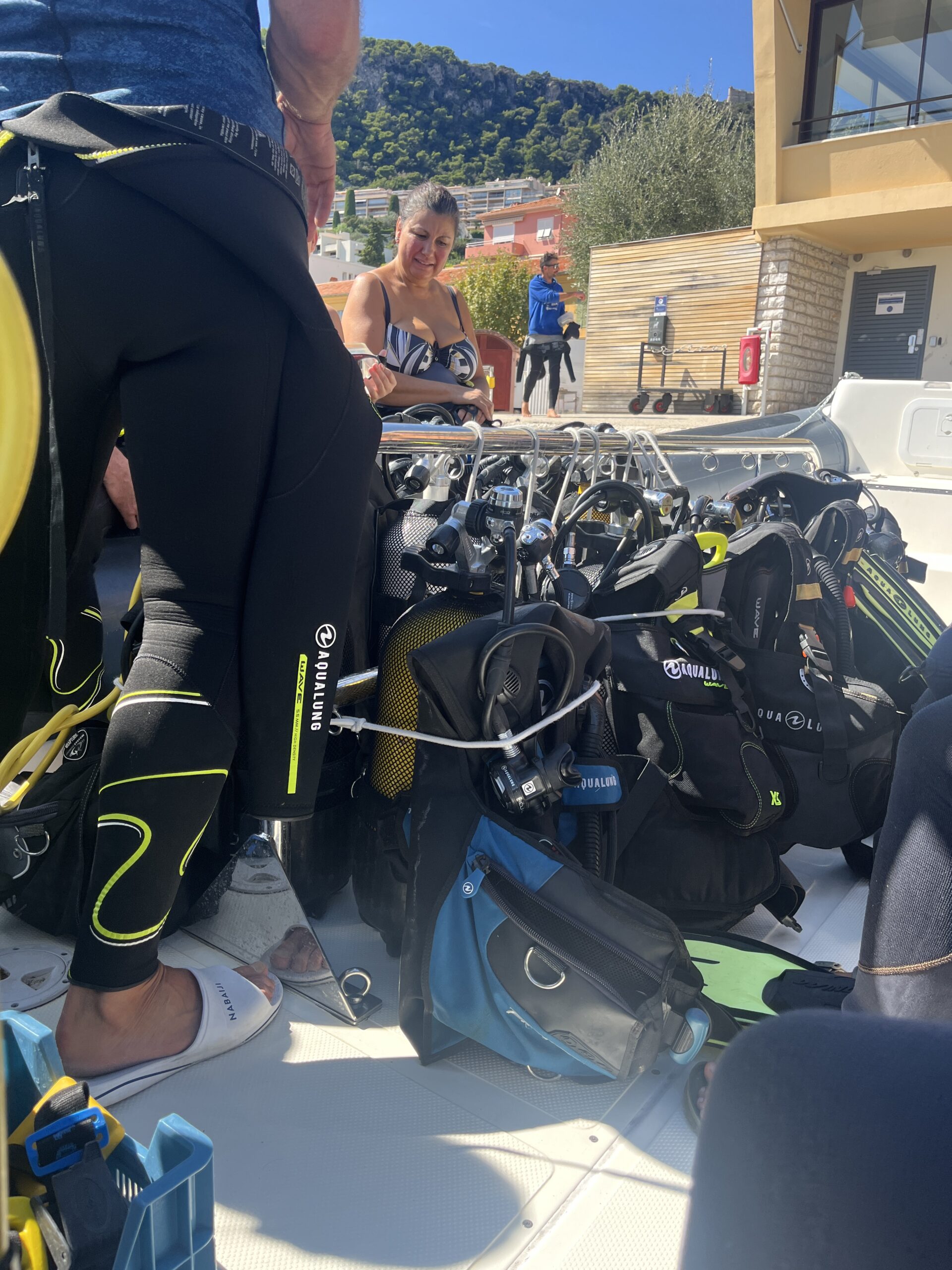 Enne puhkuse algust viskasin Piretile väljakutse – sukelduma läheme või? Piret vastas, et oi-oi, see on küll tema bucketlist’is kirjas, kuid nüüd hakkas nagu natuke kõhe. Eks mul endalgi tõmbas kõhu veidi õõnsaks, sest kuigi veeloom, siis avamerega mul head suhted ei ole. Airbnb Experience’idest leidsin algajate esmasukeldumise pakkumise minu lemmikrannas Villefranche-sur-Mer’is – teadsin, et seal on vesi mõnus läbipaistev ja väga sügavaks ei saa lahisopis ka minna. Arvustused olid head ja hind ka suhteliselt normaalne (90€), seega võtsime julguse kokku ja broneerisime tegevuse ära! Sukeldumisega ju see tore asi ka, et ilma pärast liialt muretsema ei pea – palavaga oled jahedas vees kalipso sees peidus ja vihmaga oled nagunii märg.