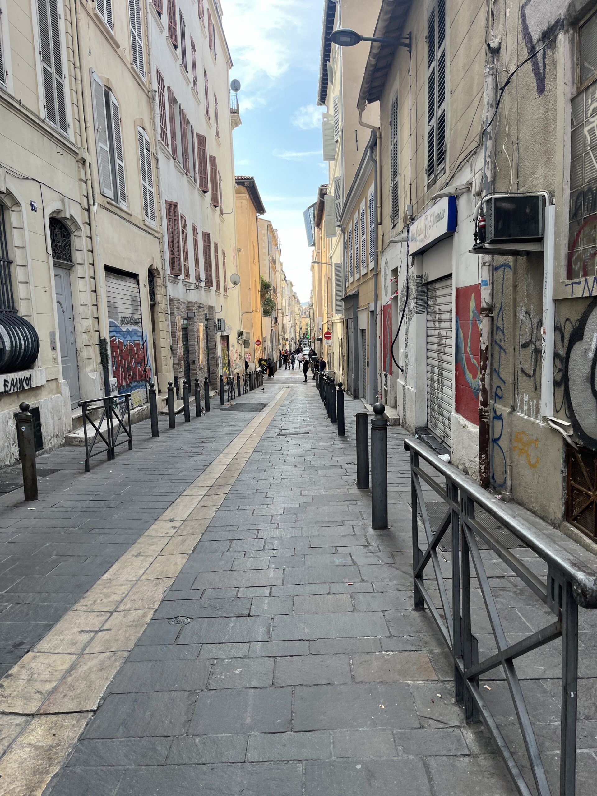 Rongijaam oli suur, kuid õnneks hästi tähistatud, seega suutsin kiirelt lipsata pagasihoidu. Kui olin seljakoti ära andnud, avastasin enda tagant pika õue lookleva saba inimesi. Noh, sellega läks küll hästi! Nüüd oli mul linna peal sisustamiseks kaks tundi, enne kui tuli samasse kohta Perpignani bussi ootama tulla. Kuna ma olin just jõudnud süva-PMSi, ei tundnud ma endas erilist turistivaimu ja otsustasin kõigepealt lihtsalt jalutada kohvikusse nimega Petrin Couchette, mille olin European Coffee Tripi lehelt välja nuuskinud. Vaatasin kaardi pealt suuna kätte, et mitte liigselt telefoniga tänavatel vehkida, ning alustasin kõndimist mööda kitsaid tänavaid. Jah, Marseille on ikka midagi muud. Tänavad olid räpased, seinad kaetud grafitiga ja inimesed teistsugused. Selles linna oli väga intensiivne, jõuline ja maskulliine energia. Tundsin, et Marseille’is “ellujäämiseks” on vaja väga tugevat selgroogu ning olla väga ärkvel ja kohal, milleks mul hetkel üldse tuju polnud. Manasin oma kõige bitchima näo pähe, panin käed taskusse ja päikseprillid ette ning kõndisin otse vaadates aga edasi. Ühel hetkel jõudsin suure tänava äärde, kus sõitsid trammid, ning üritasin aru saada, kuhu suunas edasi vaja minna. Nii kui ma aga seisma jäin, hakkas mingi mees minuga midagi õiendama ja kõndis minema. Ehmatasin korraks, kuid sain kiirelt aru, et ega see mees vist ise täpselt aru saa, kes ja kus ta on. Selles piirkonnas märkasin enda ümber aga ka rohkem eklektiliselt ja julgelt riietatud inimesi. Marseille’il on hea maitse!