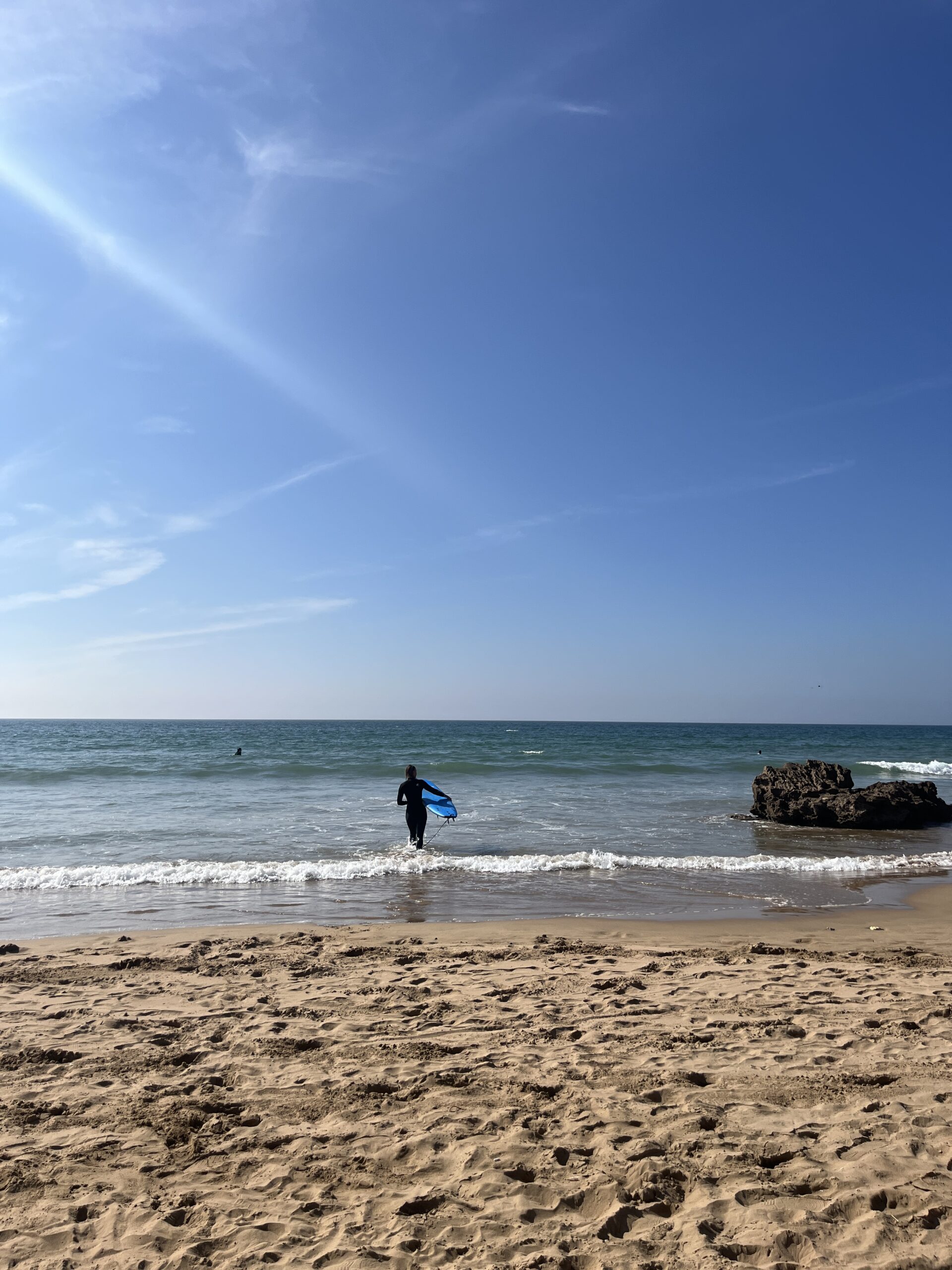 Veidi hiljem saabus ka Zahra ning istusime maha, et arutada, mis minu ülesanded siis olla võiksid. Zahra selgitas mulle, et tal on vaja veebilehte ja Instagrami, sest kui Taghazouti külalistemaja on pidevalt väljamüüdud, siis Tamraghti hostelisse tehti broneeringuid harva. Vaatasin esimene asjana üle hosteli Bookingu lehe, mis oli täielik kaos: aadress ja asukoht olid valed ega tulnud otsingus välja, pildid olid halvad ja tubade kirjeldused ekslikud; samuti polnud võimalik öömaja broneerida vähemaks kui kolmeks ööks ega ühte voodit jagatud toas. Katkusin mõttes juukseid, sest mis kasu on heast veebilehest ja Instagramist, kui broneerimine on praktiliselt võimatu? Ka Google Mapsis ei tulnud hostel välja. Lisaks oli Zahra loonud mingisuguseid ajutisi lahendusi, mis ajasid kogu süsteemi veel segasemaks. Proovisime kõigepealt lahendada Google Mapsi asukohta, kuid Google Business tahtis pidevalt automaatselt prantususe keele peale üle minna, mida me kumbki ülemäära hästi ei oska. Mina tahtsin asju ajada inglise keeles, Zahral oli arusaamiseks aga vaja araabiakeelset tõlget. Võite arvata, kui lõbus kogu see ettevõtmine oli! Äri asukohta muutmiseks oli vaja teha video tänavast, kus hostel asub, koos aadressi sildi ja naabruses asuvate hoonetega; lisaks pidi videole jääma ka hosteli logo (mida meil polnud), admini ruum (mida meil ka polnud) ja mingid telefoniarved või paberid, mis tõendaksid, et me oleme ikka seotud selle hosteli pidamisega. Kõik arved olid aga majaomaniku, mitte Zahra nimel. Seega tundus tegemist olevat täiesti võimatu missiooniga. Tegin siiski mingi video valmis, saatsin Google’ile ära ja asusin mulle tuttavama ülesande ehk Instagrami konto loomise kallale. Taaskordselt oli Zahra pidanud vajalikuks luua mingisugune ajutine Instagrami konto varjunimega, sest tema ei tahtnud, et tema nimi kuskil internetis üleval oleks. Noh, üllatus-üllatus, aga kui sa tahad hostelit pidada, siis kusagil peavad ikka sinu pildid või nimi ka läbi jooksma… Päris anonüümselt asju ajada ei saa. Pikalt ma temaga selle üle arutada ei saanud, sest ta tegi jälle kuskile minekut. Mina jalutasin igavledes maja ees, kuni silm jäi bodyboard’ide (kehalaud?) peale peatuma. Saatsin prouale sõnumi, et kas nii kaua, kui ma veel surfata ei oska, võin äkki proovida hoopis pisemate laudadega kätt? Kuna proua vastus venis, kehitasin õlgu ja haarasin ühe tervema endaga randa kaasa. Hiljem selgus, et ma olin küll laste oma võtnud, aga rõõmu oli mul sellest küll ja veel! Erinevalt surfamisest polnud siin vaja muid erilisi oskusi, kui ennast õigel hetkel lainega kaasa ajastada ning siis kaldani liuelda.