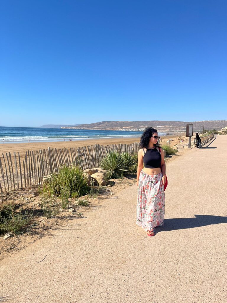 Teeme prantslasele hommikusöögi valmis ning seejärel pakin end järjekordsele kohviku tööpäevale. Naljakas, kuidas ma koguaeg unistasin, et nii äge, kui mul oleks selline töö, mida saaks teha lihtsalt kohvikus istudes. Endalegi märkamatult on see unistus ju täiesti manifesteerunud. Siin ma istun, nädalast nädalasse, kirjutan blogi, ehitan veebilehte ja toodan Instagrami sisu, täna kujundan hostelile logo. Ma ainult unustasin unistades lisada, et see kohvikus töötamine võiks ühtlasi ka raha sisse tuua. Ja kui te nüüd mõtlete, et aga Kärt, me ju maksame su blogi lugemise eest, siis jah – te maksate nende kohvide eest (aitäh, aitäh!), mida ma kohvikus istudes manustan. Aga sissetulekute osas olen ma nullis! Nii et tuleb väikseid korrektuure manifestatsiooni teha, muud midagi. Unistus ise on ju tegelikult realiseerunud 🙂 Löön siis Canva lahti ja hakkan logo mustandeid looma. Zahra näitas mulle hommikul, millist sorti disainid talle meeldivad, ning nüüd ma üritan hakata midagi taolist välja nuputama. Ainult et avastan üsna pea – mul on küll loomingulist huvi, aga mitte oskuseid. Hea maitse vast on ka, aga see hea maitse väljendub selles, et ma pole rahul nende poolkõvade disainidega ja saan aru, et ei näe hea välja, aga muuta ei oska… Umbes nagu, kui sul on muusikalist kuulmist mõistmaks, et sa laulad mööda, aga mitte lauluoskust, et õigeid noote tabada. Nii ma siis pusin ja higistan, kui järsku saabub mulle kõne. Kõne?? Mulle ei helista kunagi keegi peale Zahra. Aga näe, neiu Fatima on mu numbri suutnud telefonist üles leida. Võtan kõne üllatunult vastu ja mulle kõlab tuttav mänguline naerune hääl: “Tsauuuu, mis sa teed paegu? Ma istun taksos ja sõidan praegu Taghazouti poole! Kas sa oled Tamraghtis või Taghazoutis ja kas sul on aega minuga kokku saada? Kus ma maha tulema peaks, ütle ruttu!” Kogun end kiiresti, sest enda peas oli mul ju natuke asisem päevaplaan tehtud, aga ega Fatima siis iga päev külla tule! Kamandan ta Tamraghtis maha tulema ja saadan kohviku asukoha. See peaks jätma mulle umbes 15-20 minutit disainide viimistlemiseks. Õnneks ma töötan ajalise surve all hästi, seega Fatima saabumise hetkeks on kolm versiooni Zahrale presenteerimiseks valmis.